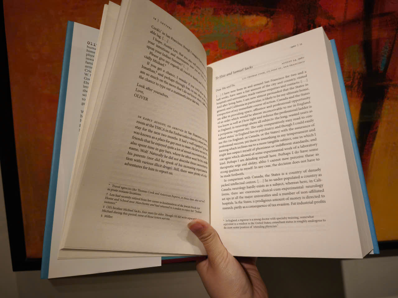 Oliver Sacks, một trong những nhà nhân văn vĩ đại của thời đại chúng ta – người tự mô tả mình trên những trang sách này là một 'bác sĩ triết học' và một 'nhà thiên văn học hướng nội' – đã viết thư cho một nhóm gia đình và bạn bè đa dạng. Hầu hết là các nhà khoa học, nghệ sĩ và nhà văn, thậm chí là chính khách: Francis Crick, Antonio Damasio, Jane Goodall, W. H. Auden, Susan Sontag, Stephen Jay Gould, Björk và người anh em họ đầu tiên của ông, Abba Eban. Nhưng nhiều bức thư hùng hồn nhất trong bộ sưu tập này được gửi đến những người bình thường đã viết thư cho ông với những triệu chứng và câu hỏi kỳ lạ của họ, những người mà ông trả lời bằng một cảm giác hào phóng và ngạc nhiên.