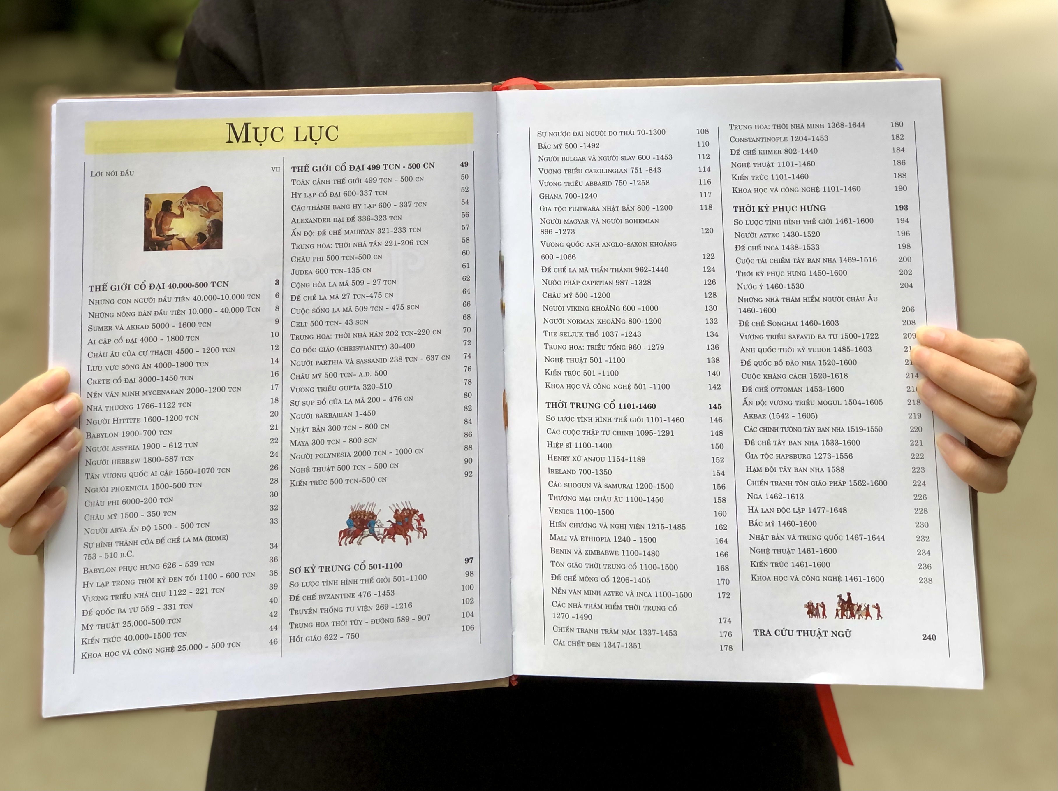 Đầu mỗi chương sẽ khái quát bối cảnh lịch sử thông qua bản đồ với các khu vực cụ thể, giúp độc giả hình dung rõ nét về thời đại đó. Tiếp đó, các sự kiện chính được mô tả theo 2 cấp độ: cung cấp thông tin và phân tích chuyên sâu. Cuối chương sẽ tổng kết lại thành tựu về Nghệ thuật, Kiến trúc, Khoa học và Công nghệ.