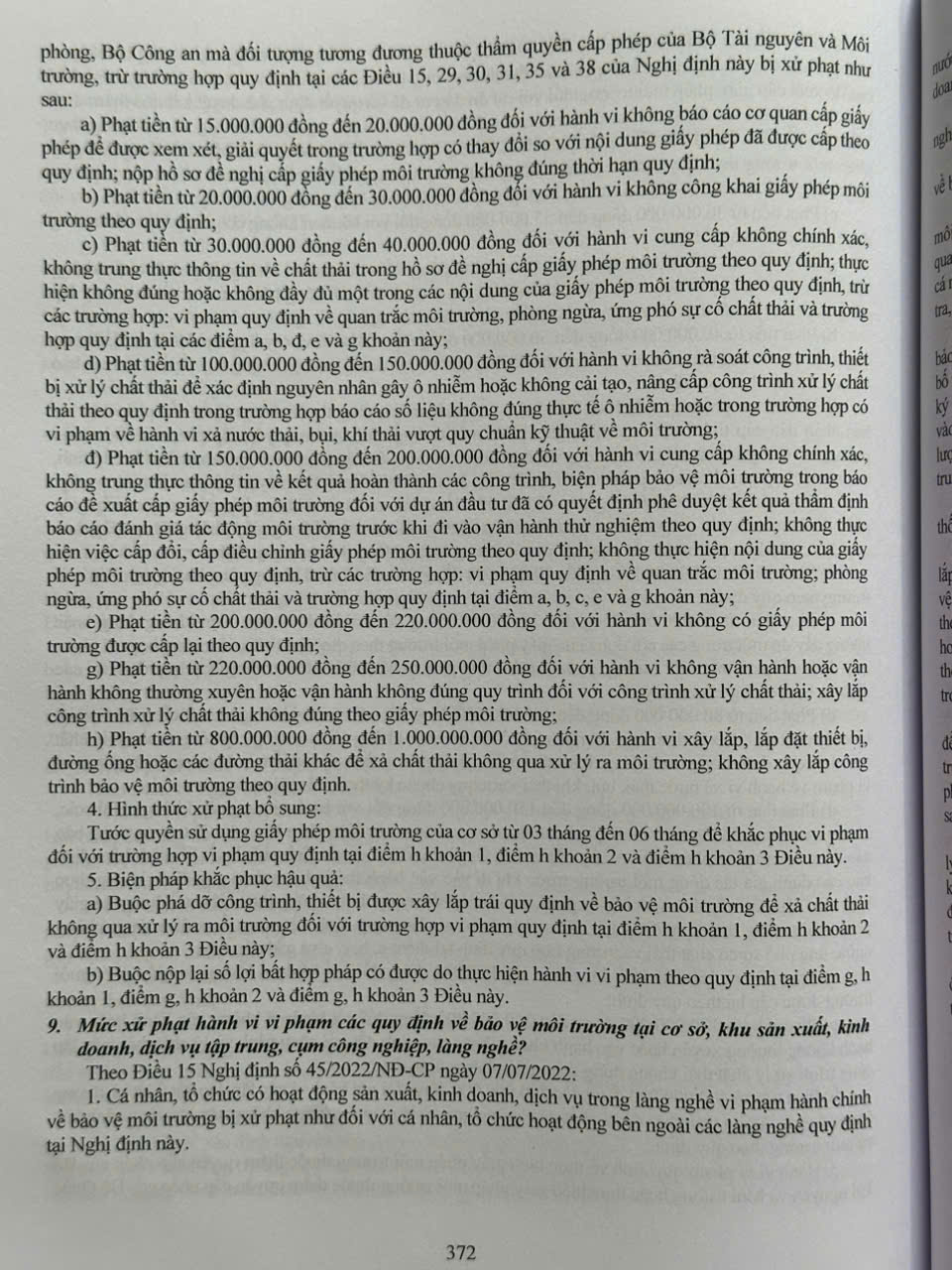 Sách Luật Bảo Vệ Môi Trường, Luật Địa Chất Và Khoáng Sản Và Văn Bản Hướng Dẫn Thi Hành, Quy Định Về Xử Phạt Vi Phạm Hành Chính Trong Lĩnh Vực Bảo Vệ Môi Trường