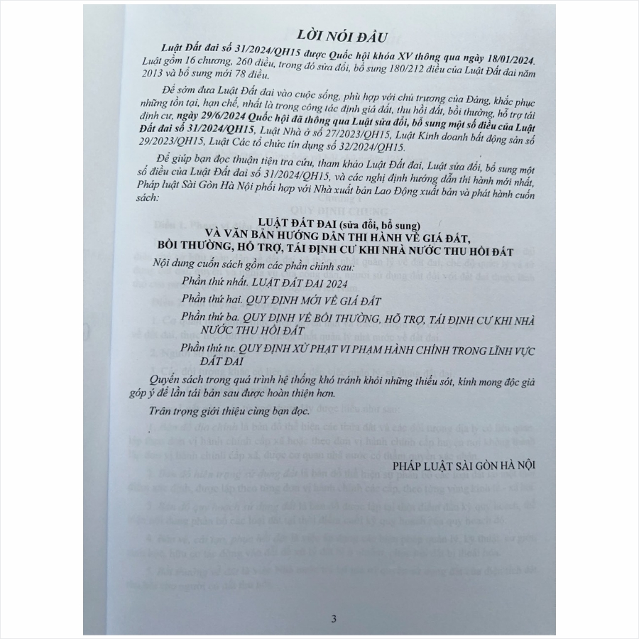 Luật Đất đai (sửa đổi, bổ sung năm 2024) và các văn bản hướng dẫn thi hành Tác giả: Quốc Hội Nhà xuất bản: Lao Động Công ty phát hành: Nhà sách Tư Pháp Ngày