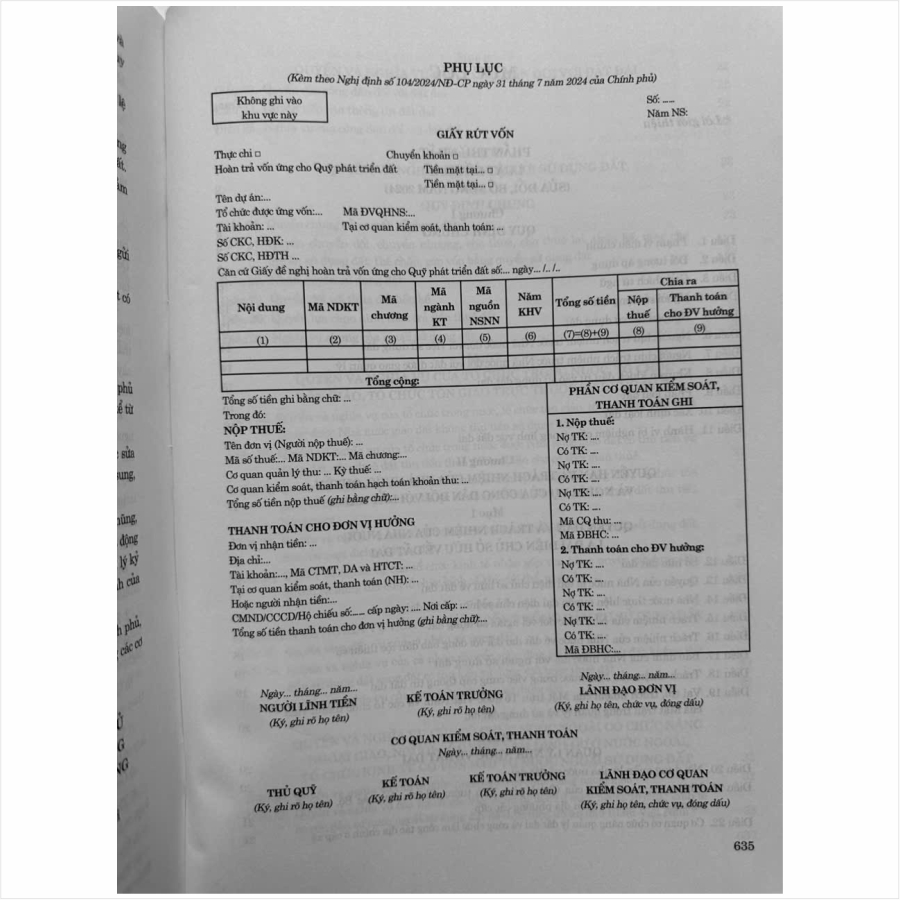 – Nghị định số 104/2024/NĐ-CP ngày 31 tháng 7 năm 2024 của Chính phủ Quy định về Quỹ phát triển đất;