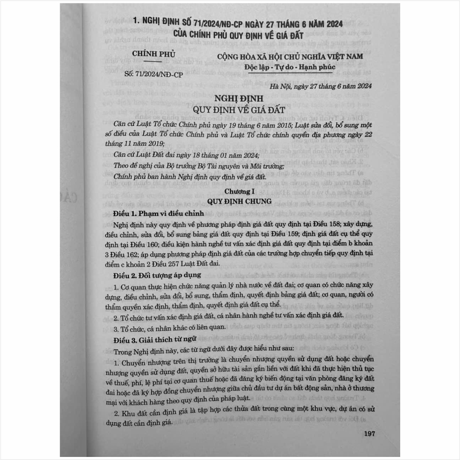 Ngày 18 tháng 01 năm 2024, tại Kỳ họp bất thường lần thứ năm, Quốc hội nước Cộng hòa xã hội chủ nghĩa Việt Nam khóa XV đã thông qua Luật Đất đai số 31/2024/QH15 và có hiệu lực thi hành từ ngày 01 tháng 01 năm 2025. Tuy nhiên, với ý nghĩa và tầm quan trọng đặc biệt của Luật Đất đai trong đời sống kinh tế – xã hội, quốc phòng, an ninh, có tác động sâu rộng đến người dân, doanh nghiệp và có mối quan hệ chặt chẽ với nhiều luật khác có liên quan. Do đó, ngày 29 tháng 6 năm 2024, tại Kỳ họp thứ bảy, Quốc hội nước Cộng hòa xã hội chủ nghĩa Việt Nam khóa XV đã thông qua Luật Sửa đổi, bổ sung một số điều của Luật Đất đai số 31/2024/QH15. Luật Nhà ở số 27/2023/QH15. Luật Kinh doanh bất động sản số 29/2023/QH15, Luật Các tổ chức tín dụng số 32/2024/QH15. Theo đó, Luật Đất đai số 31/2024/QH15 có hiệu lực thi hành từ ngày 01 tháng 8 năm 2024.