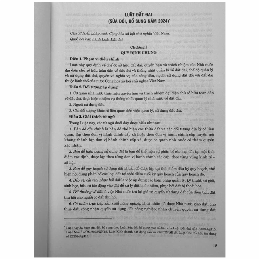 Luật Đất đai số 31/2024/QH15 được Quốc hội nước Cộng hòa xã hội chủ nghĩa Việt Nam khóa XV, kỳ họp bất thường lần thứ năm thông qua ngày 18 tháng 01 năm 2024,