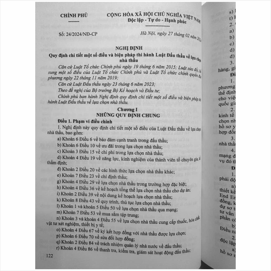 – Nghị định số 24/2024/NĐ-CP ngày 27 tháng 02 năm 2024 của Chính phủ ban hành Nghị định quy định chi tiết một số điều và biện pháp thi hành Luật Đấu thầu về lựa chọn nhà thầu;