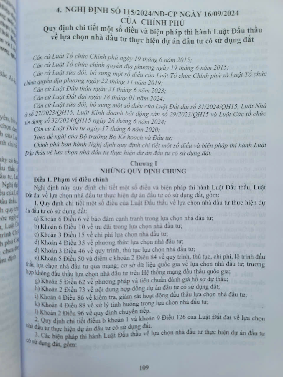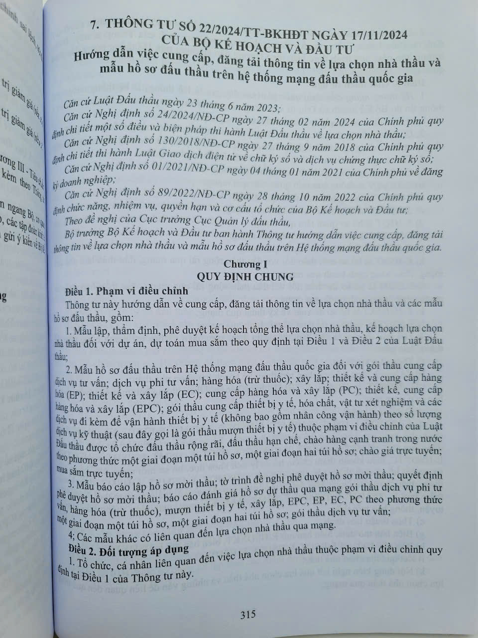 Ngày 23/06/2023 Luật Đấu thầu (sửa đổi) được Quốc hội thông qua. Luật có hiệu lực từ 01/01/2024. Sau đó Chính phủ, Bộ Kế hoạch và đầu tư cũng đã ban hành nhiều quy định chi tiết hướng dẫn thi hành Luật Đấu thầu và các quy định mới về lựa chọn nhà thầu, nhà đầu tư như Nghị định số 17/2025/NĐ-CP ngày 06/02/2025 Sửa đổi, bổ sung một số điều của các Nghị định quy định chi tiết một số điều và biện pháp thi hành Luật Đấu thầu, Nghị định số 115/2024/NĐ-CP ngày 16/09/2024 Quy định chi tiết một số điều và biện pháp thi hành Luật Đấu thầu về lựa chọn nhà đầu tư thực hiện dự án đầu tư có sử dụng đất, Thông tư số 22/2024/TT-BKHĐT ngày 17/11/2024 Hướng dẫn việc cung cấp, đăng tải thông tin về lựa chọn nhà thầu và mẫu hồ sơ đấu thầu trên hệ thống mạng đấu thầu quốc gia…