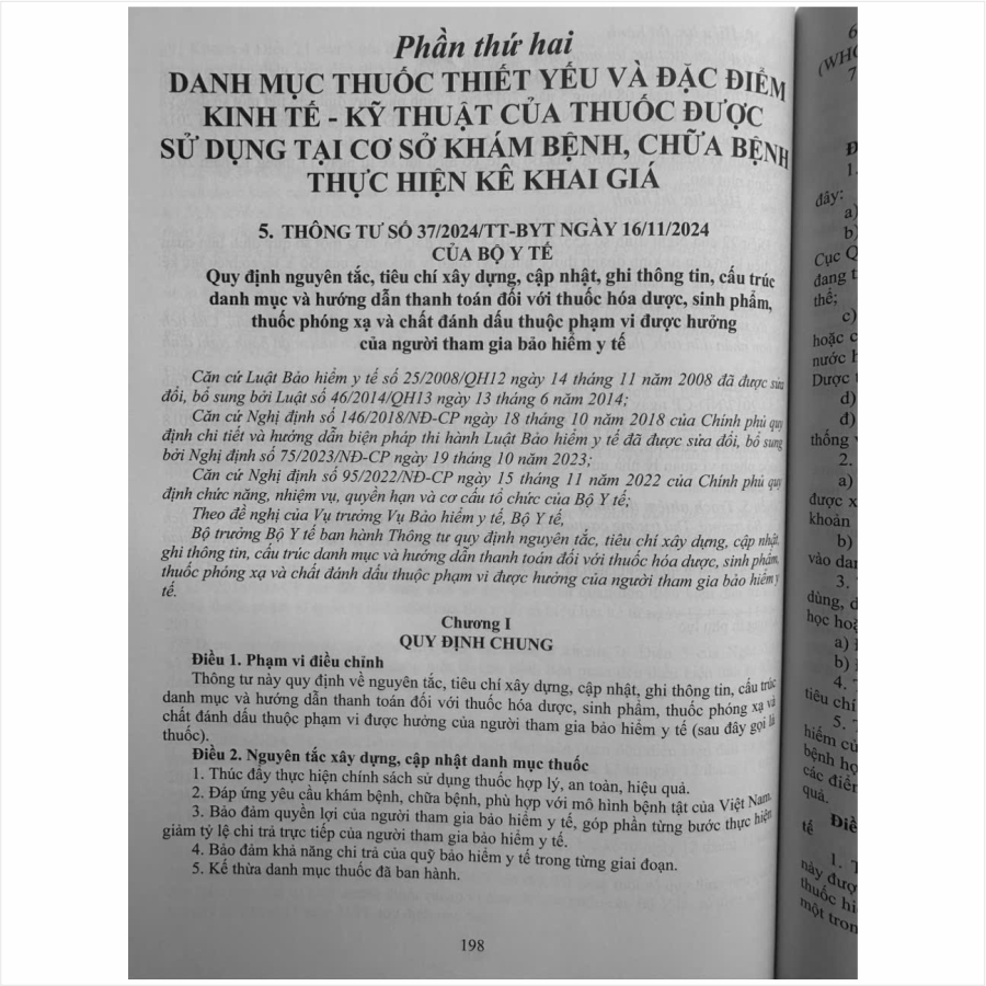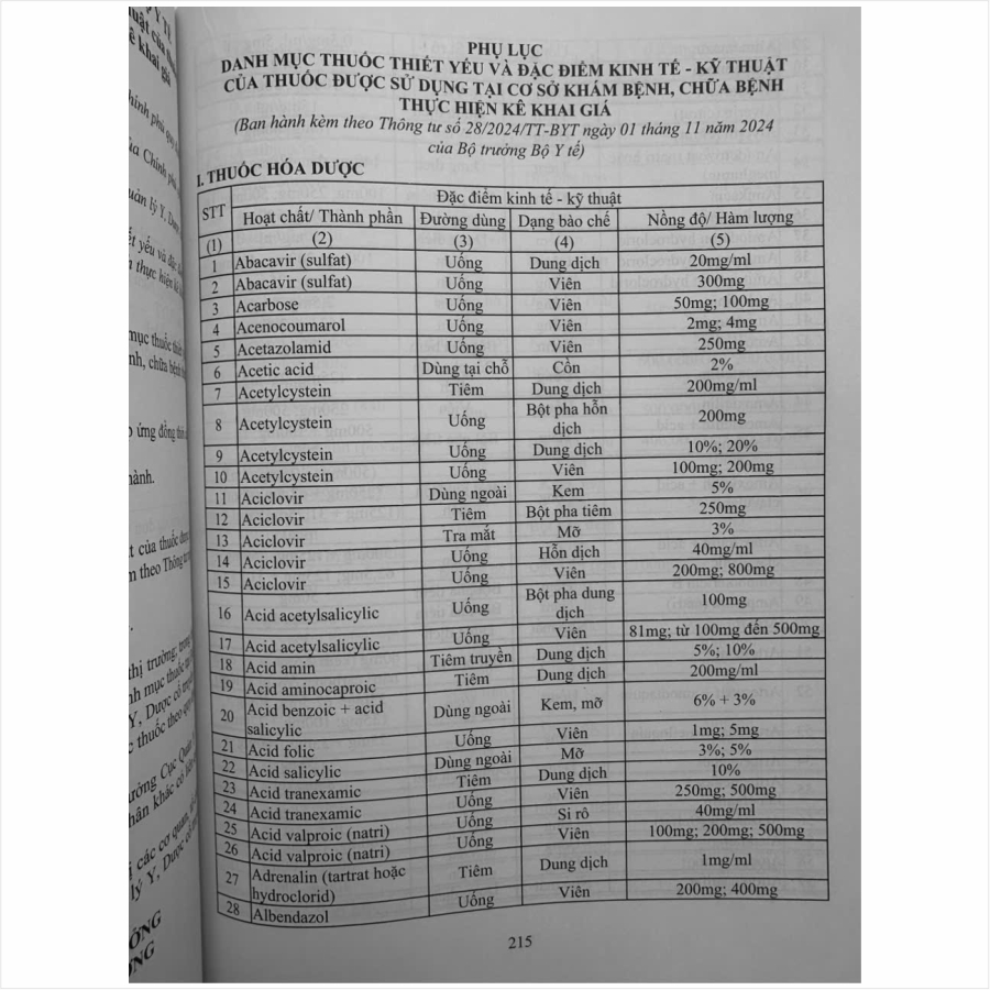 Phần thứ hai. DANH MỤC THUỐC THIẾT YẾU VÀ ĐẶC ĐIỂM KINH TẾ – KỸ THUẬT CỦA THUỐC ĐƯỢC SỬ DỤNG TẠI CƠ SỞ KHÁM BỆNH, CHỮA BỆNH THỰC HIỆN KÊ KHAI GIÁ