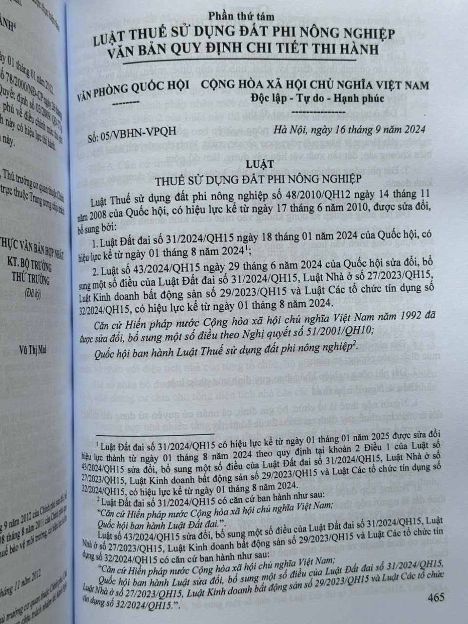 Phần thứ tám. LUẬT THUẾ SỬ DỤNG ĐẤT PHI NÔNG NGHIỆP VĂN BẢN QUY ĐỊNH CHI TIẾT THI HÀNH