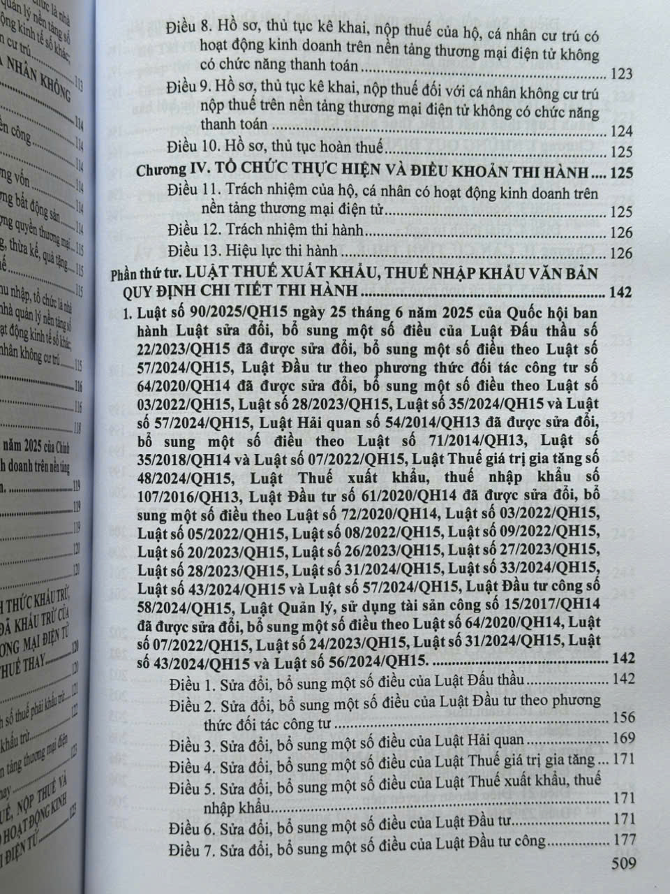 – Luật số 90/2025/QH15 ngày 25 tháng 6 năm 2025 của Quốc hội ban hành Luật sửa đổi, bổ sung một số điều liên quan đến Luật Thuế giá trị gia tăng; Luật Thuế xuất khẩu, thuế nhập khẩu…