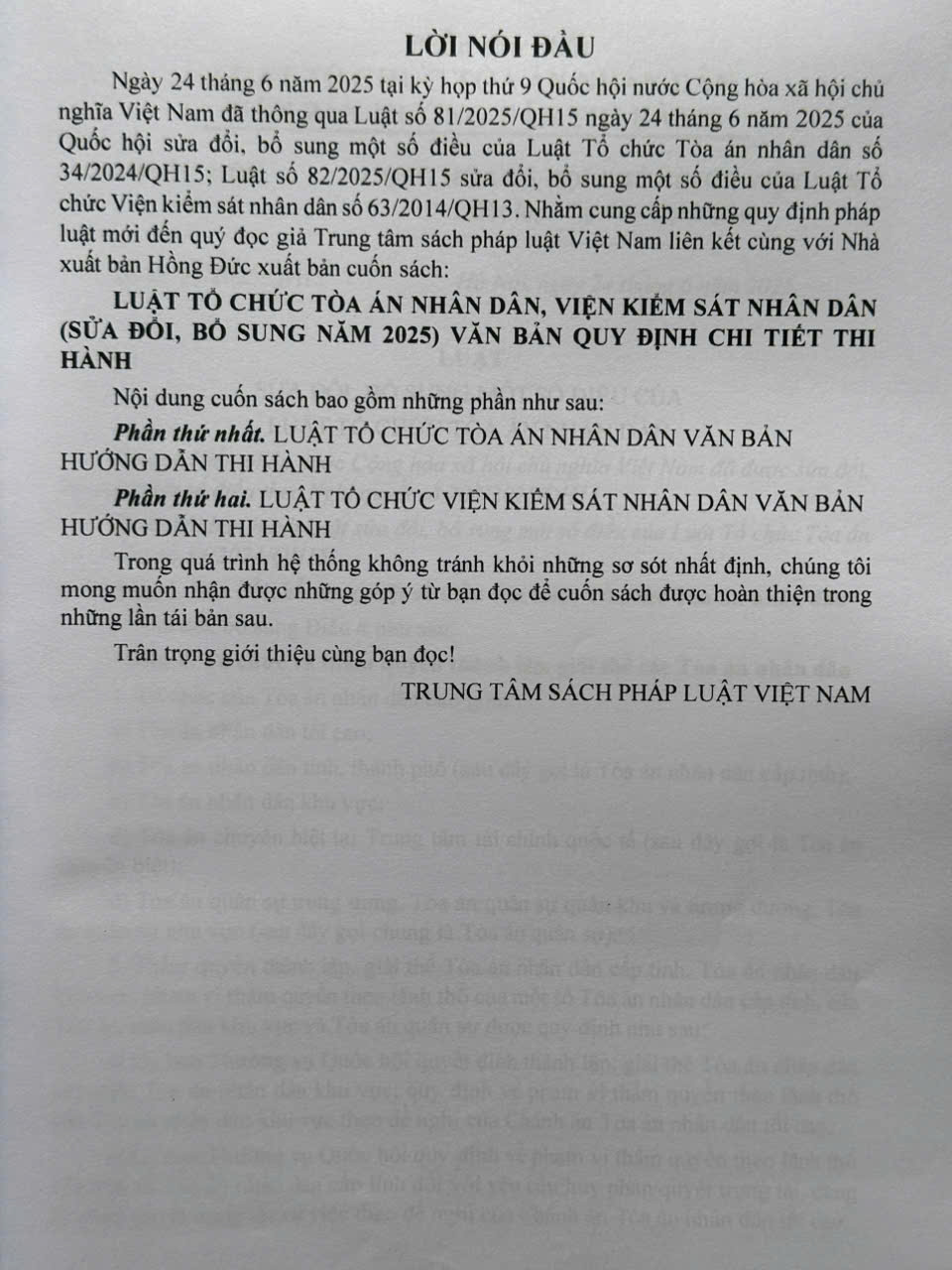 Nhà sách Nam Việt – Namvietbook xin trân trọng giới thiệu cuốn sách: Luật Tổ Chức Tòa Án Nhân Dân, Viện Kiểm Sát Nhân Dân sửa đổi, bổ sung năm 2025 - Văn Bản Quy Định Chi Tiết Thi Hành