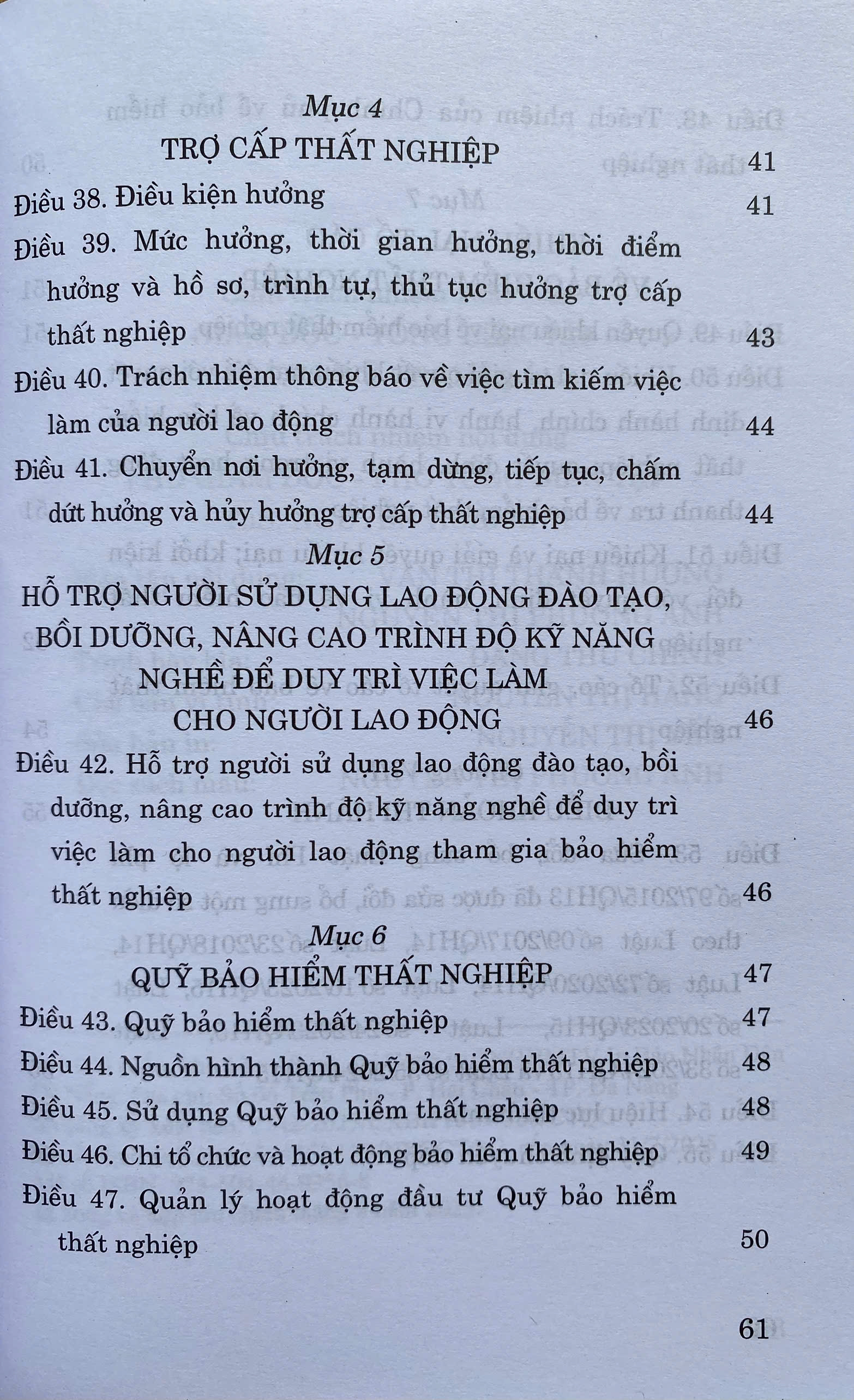 Chương 1: NHỮNG QUY ĐỊNH CHUNG Chương 2: VIỆC LÀM TUYỂN DỤNG VÀ QUẢN LÝ LAO ĐỘNG Chương 3: HỢP ĐỒNG LAO ĐỘNG Chương 4: GIÁO DỤC NGHỀ NGHIỆP, PHÁT TRIỂN KỸ NĂNG NGHỀ Chương
