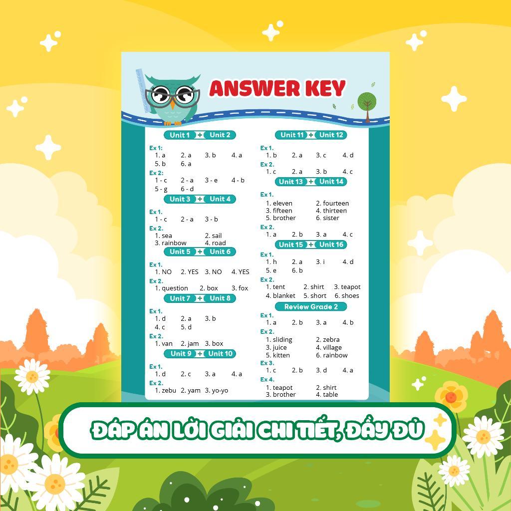 - Hệ thống từ vựng quen thuộc theo chương trình sách giáo khoa Các chủ đề, chủ điểm từ vựng trong sách cũng chính là các chủ để cơ bản và thường gặp với đời sống thường ngày. Bởi vậy, việc ghi nhớ bộ từ vựng này cũng sẽ giúp con tăng cường vốn từ vựng phong phú để ứng dụng trong giao tiếp hàng ngày. Kèm sau mỗi bài học là những hoạt động thực hành thú vị, các con vừa được ôn lại từ vựng hiệu quả, vừa được thoải mái thư giãn.