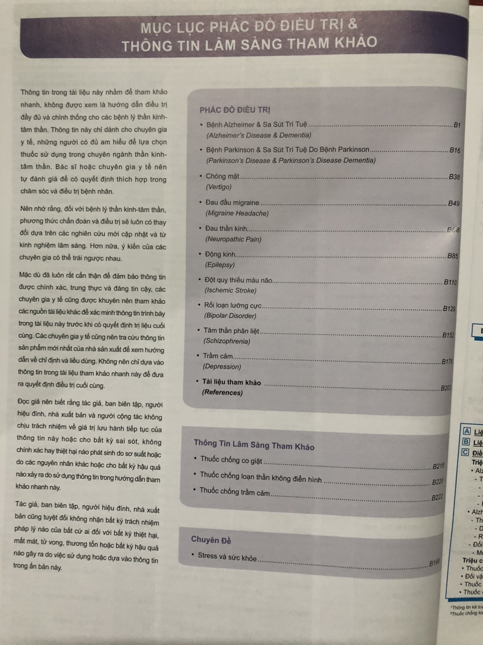 Mục lục viết tắt trong MIMS Neurology & Psychiatry.