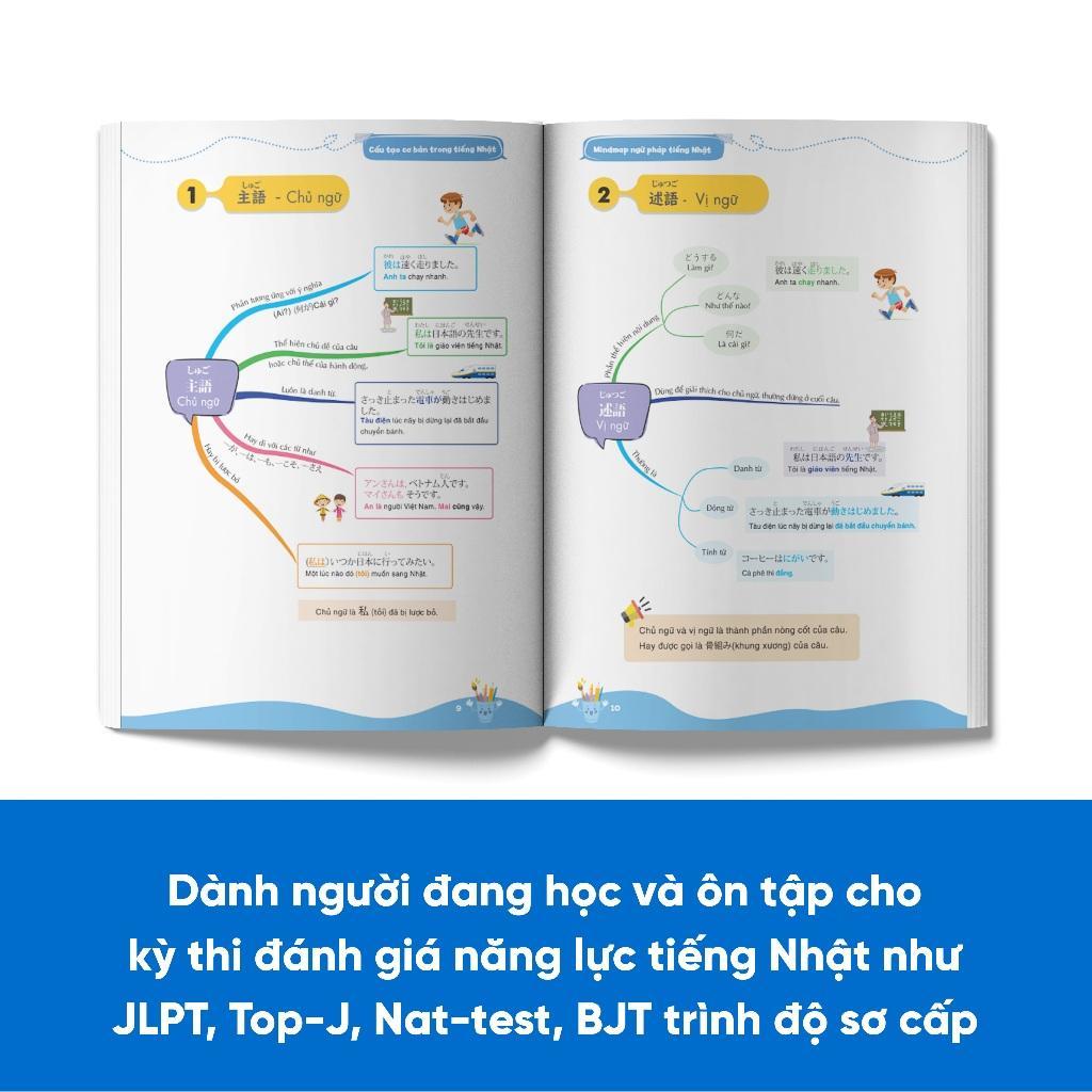 Cuốn sách tổng hợp một cách hệ thống các ngữ pháp sơ cấp giúp người học dễ dàng nắm bắt và được cung cấp đầy đủ về ý nghĩa, cách chia cùng với ví dụ minh họa sinh động. Việc hệ thống các mẫu ngữ pháp dưới dạng sơ đồ tư duy – mindmap giúp người học dễ nhớ cũng như vận dụng vào các bài tập luyện tập hay như kỳ thi JLPT.