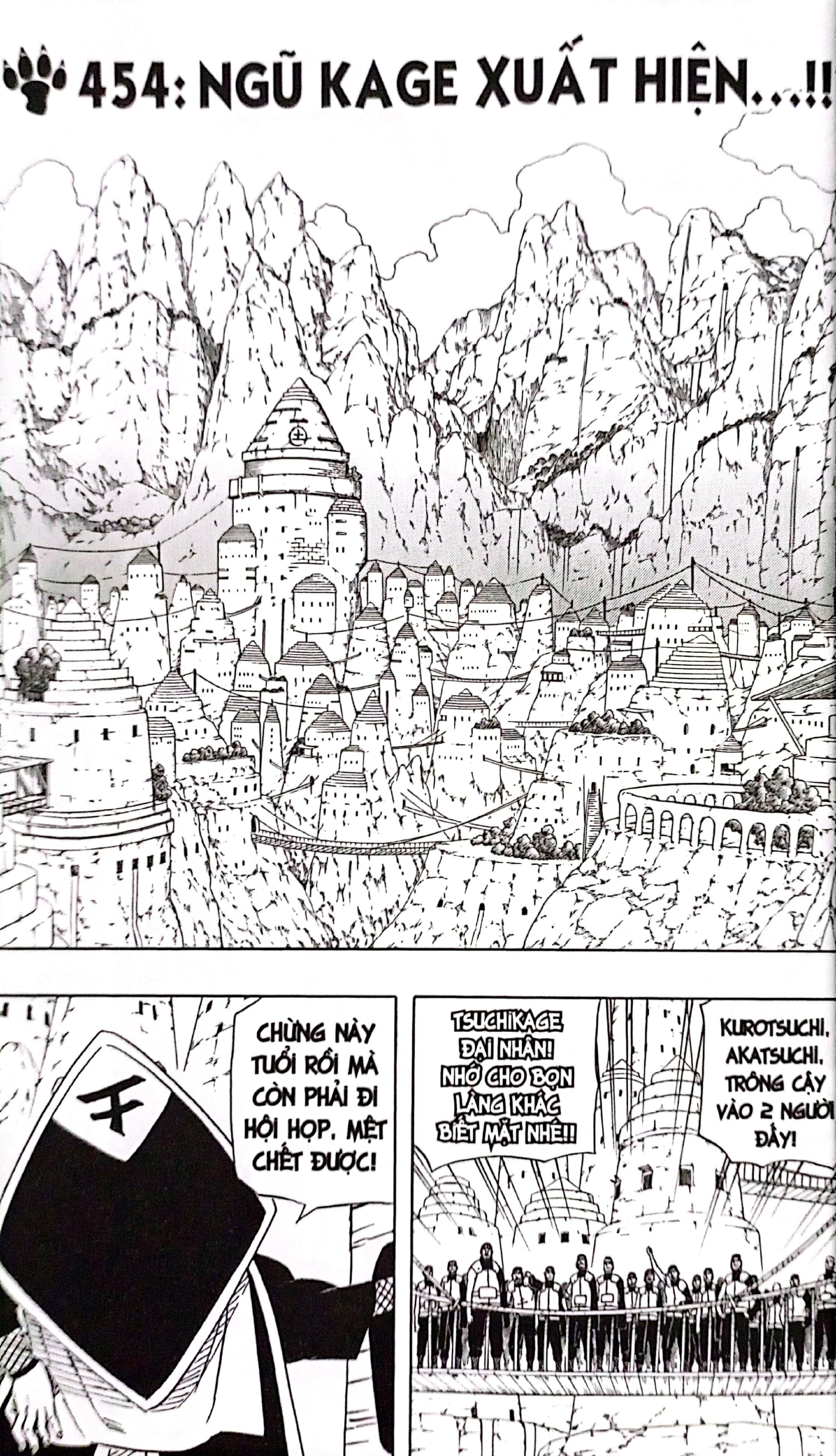 Naruto - Tập 49 - Hội Đàm Ngũ Kage, Bắt Đầu…!! Nhằm triệt hạ Akatsuki cùng mưu đồ thống trị của chúng, Hội đàm Ngũ Kage đã được tổ chức theo lời kêu gọi của Raikage. Đại diện các làng lần lượt tập trung ở Thiết Quốc! Trong lúc đó, trước chủ trương triệt hạ Sasuke của làng Mây, để thù hận không kéo theo thù hận, Naruto quyết định trực tiếp đứng ra đàm phán với Raikage…!? MASASHI KISHIMOTO “Dạo này làm việc một m.ình buồn quá, nên tôi thường mở phim lên coi. Định bụng vừa tập trung làm việc vừa lướt phim, nhưng khi nhận ra, tôi lại đang tập trung xem phim và vẽ qua loa đại khái mới chết. Kiểu này tới lúc xem trúng bộ ba phim liên hoàn thì không biết thế nào đây…” (Toát mồ hôi)