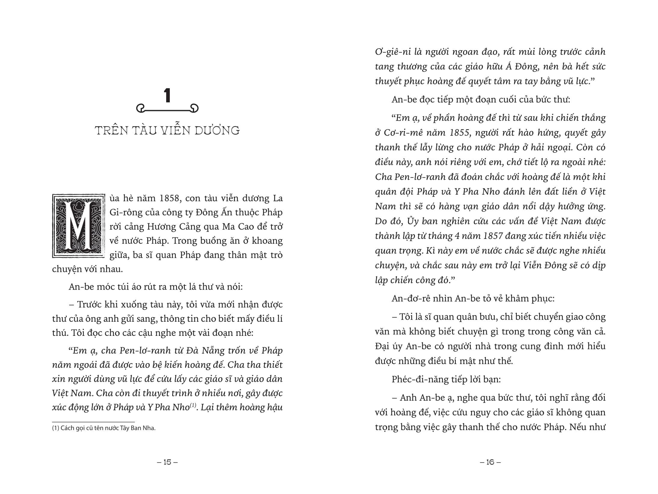 “… Cả ba sĩ quan Pháp, không ai bảo ai, cùng liếc mắt nhìn người chủng sinh Việt Nam. Gương mặt nghiêm trang, nước da tai tái, vừng trán rộng điểm vài nếp nhăn trước tuổi, và nhất là đôi mắt sáng vừa biểu hiện trí thông minh, vừa ẩn đượm một vẻ buồn cô đơn của anh, gợi cho người đối diện những nhận xét khác nhau.”