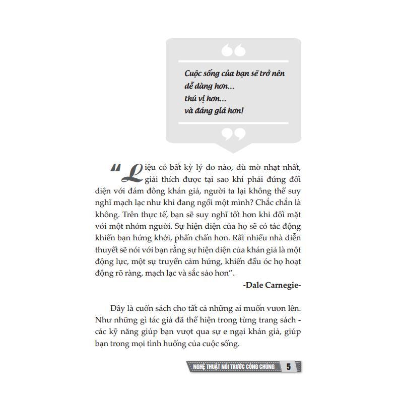 bán hàng… Nghệ thuật nói trước công chúng là một tác phẩm xuất sắc về giao tiếp, chinh phục công chúng của Dale Carnegie – tác giả cuốn Đắc nhân tâm nổi tiếng. Những phương pháp giao tiếp, diễn thuyết có giá trị thực tiễn trong tác phẩm sẽ mang lại cho bạn mối quan hệ bạn bè, khách hàng tốt hơn trong công việc và cuộc sống.
