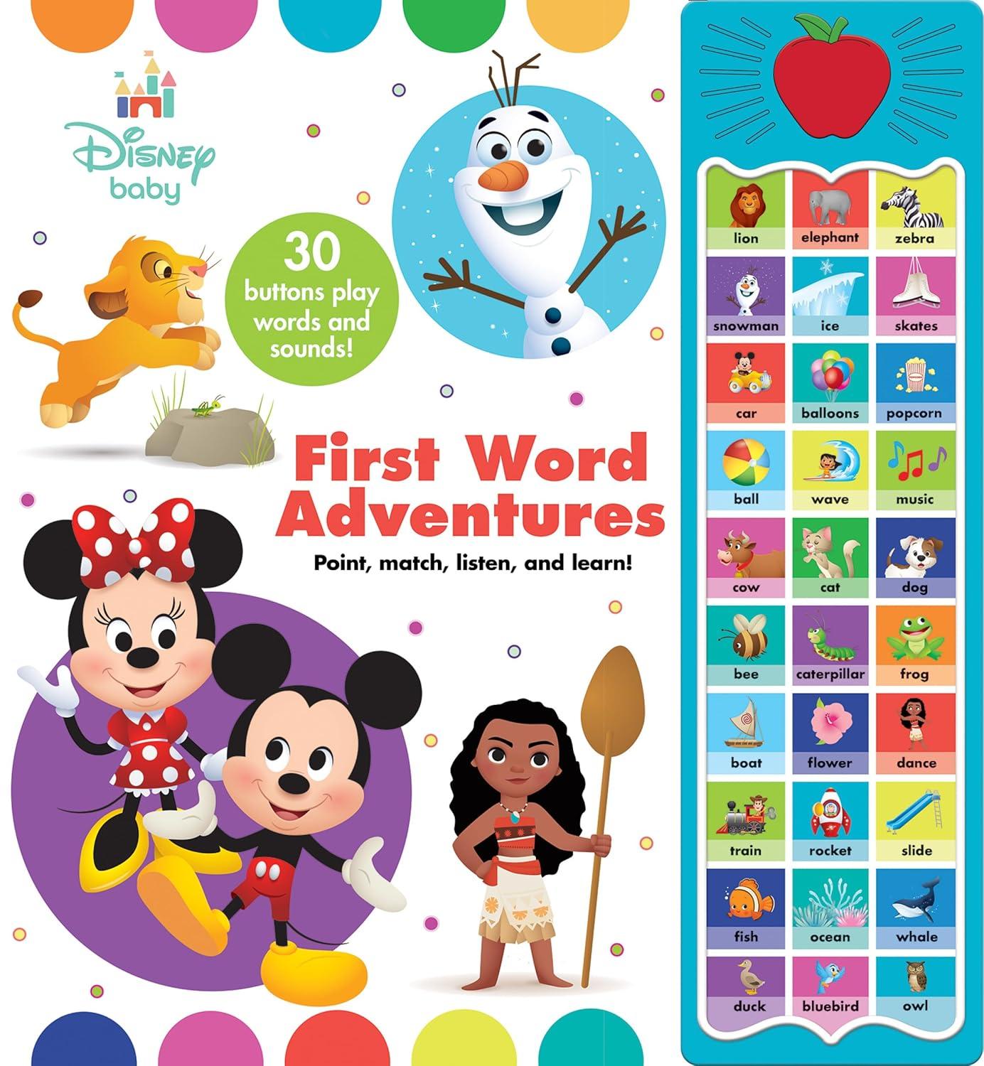 Join beloved and Pixar characters as they explore the world, and discover first words along the way! Press 30 sound buttons to hear the words read aloud along with exciting sounds. Matching sight words to pictures and sounds is a first step to reading.