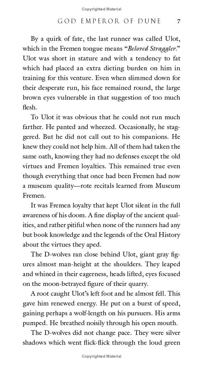 Millennia have passed on Arrakis, and the once-desert planet is green with life. Leto Atreides, the son of the world’s savior, the Emperor Paul Muad’Dib, is still alive but far from human. To preserve humanity’s future, he sacrificed his own by merging with a sandworm, granting him near immortality as God Emperor of Dune for the past thirty-five hundred years.