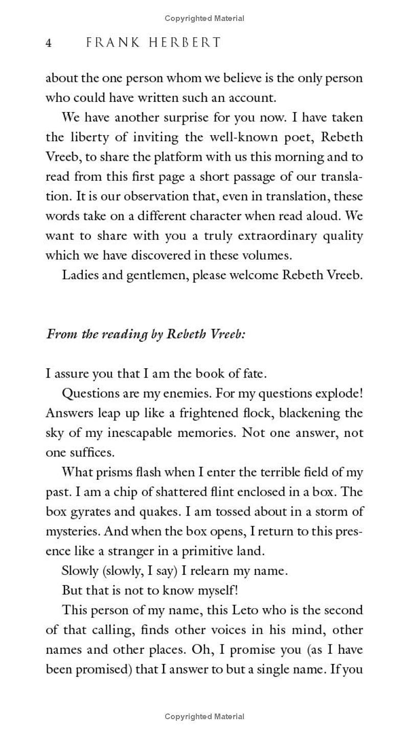Leto’s rule is not a benevolent one. His transformation has made not only his appearance but his morality inhuman. A rebellion, led by Siona, a member of the Atreides family, has risen to oppose the despot’s rule. But Siona is unaware that Leto’s vision of a Golden Path for humanity requires her to fulfill a destiny she never wanted—or could possibly conceive....