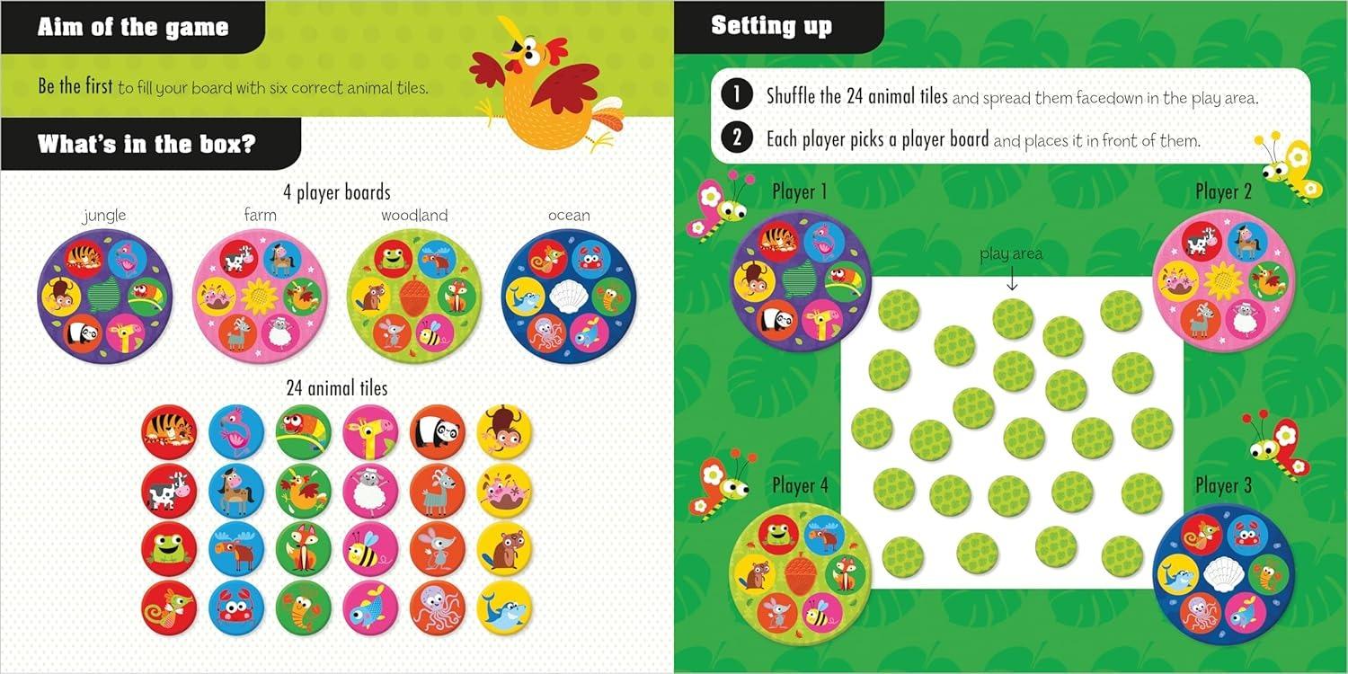 Includes 24 tiles, 4 touch-and-feel player boards and an instruction booklet