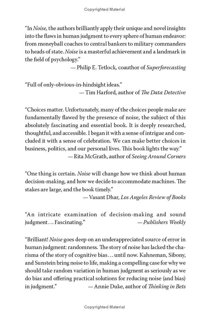 Packed with original ideas, and offering the same kinds of research-based insights that made Thinking, Fast and Slow and Nudge groundbreaking New York Times bestsellers, Noise explains how and why humans are so susceptible to noise in judgment--and what we can do about it.