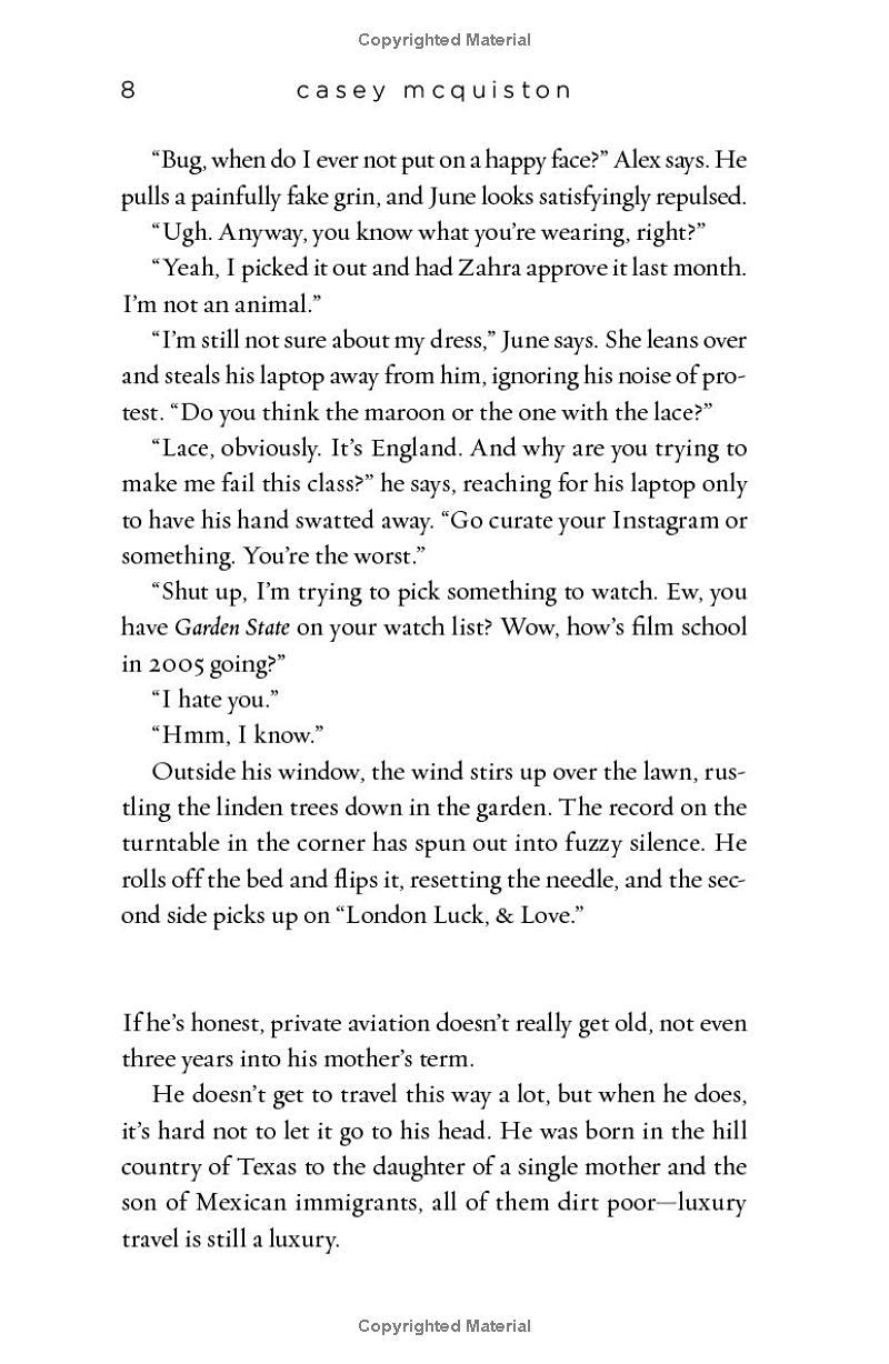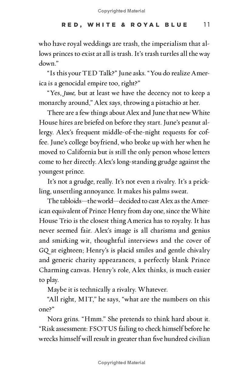 - Instant New York Times and USA Today bestseller * What happens when America's First Son falls in love with the Prince of Wales? Alex Claremont-Diaz is handsome, charismatic, a genius – pure millennial-marketing gold for the White House ever since his mother first became President of the United States. There’s only one problem. When the tabloids get hold of a photo involving an altercation between Alex and Prince Henry, U.S./British relations take a turn for the worse. Heads of family and state devise a plan for damage control: stage a truce. But what begins as a fake, rammable friendship grows deeper, and more dangerous, than either Alex or Henry could have imagined. Soon they are hurtling into a secret romance that could derail the presidential campaign and upend two nations. 'Red, White & Royal Blue is outrageously fun. It is romantic, sexy, witty, and thrilling. I loved every second.' - Taylor Jenkins Reid, New York Times bestselling author of Daisy Jones & The Six
