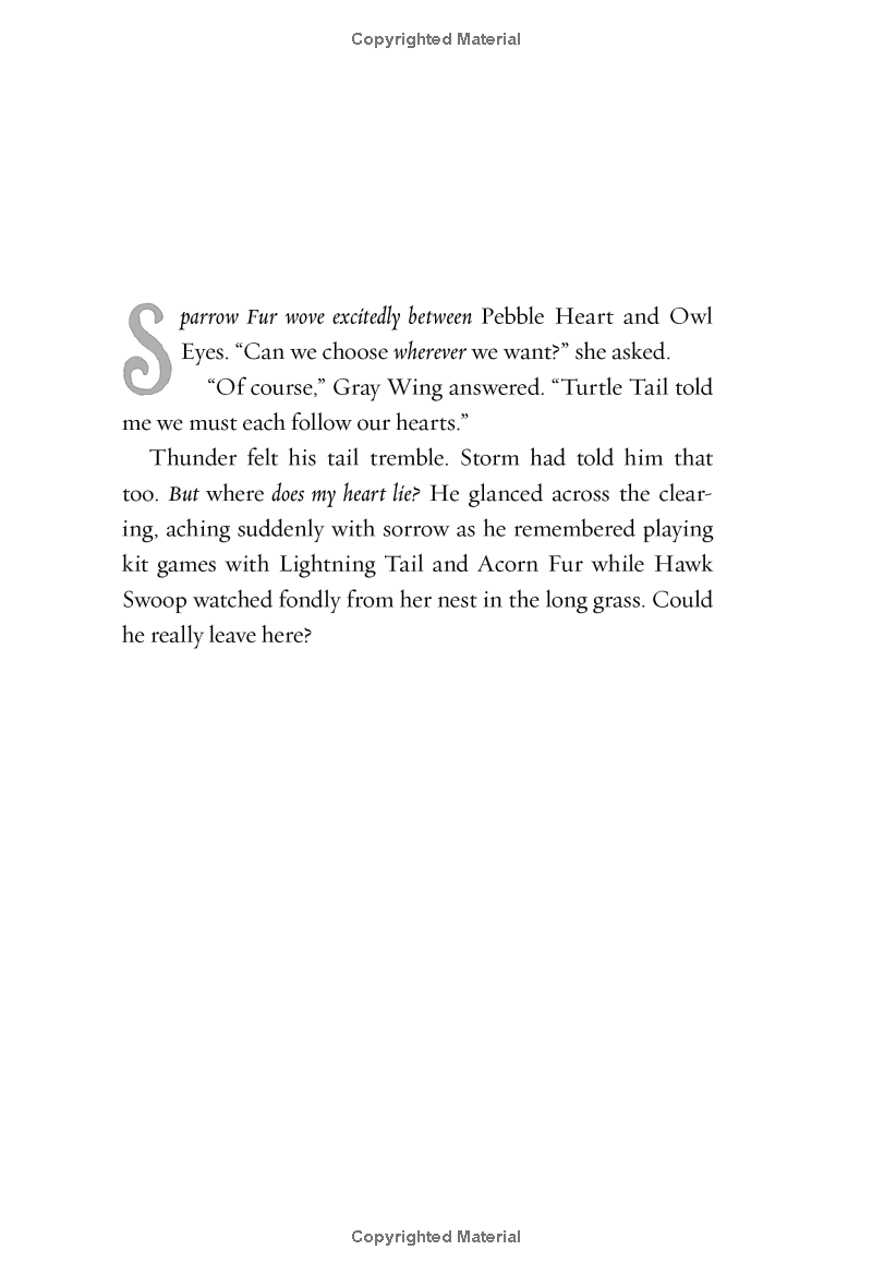 The spirit-cats have spoken: to survive, the cats from the mountains must grow and spread like the Blazing Star. Clear Sky believes the only way to grow is to band together again, but few cats are willing to ally with him. While Tall Shadow plans to establish a new camp in the pine forest, River Ripple is content by the water, and Wind Runner has made her own home on the moor.