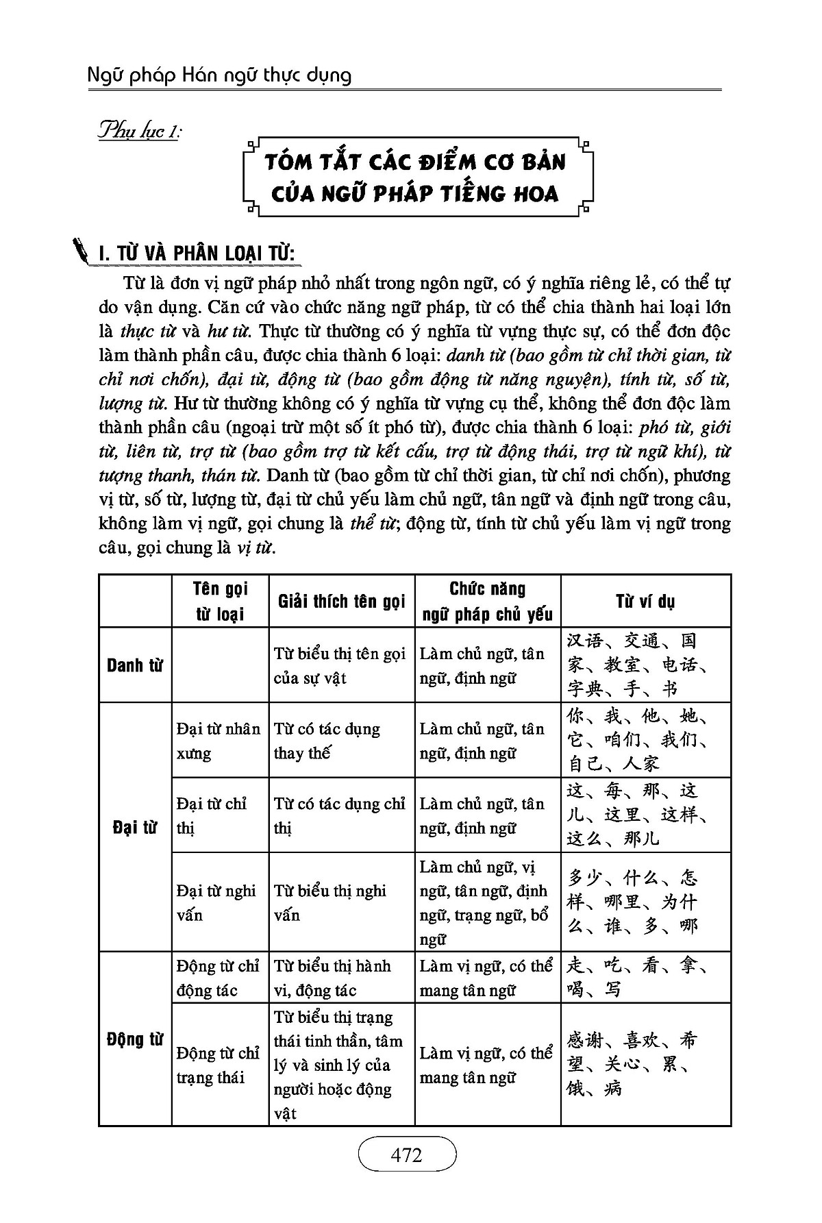 Ngoài ra, sách còn có 6 phụ lục có giá trị, giúp người học củng cố thêm các kiến thức về ngữ pháp tiếng Hán.
