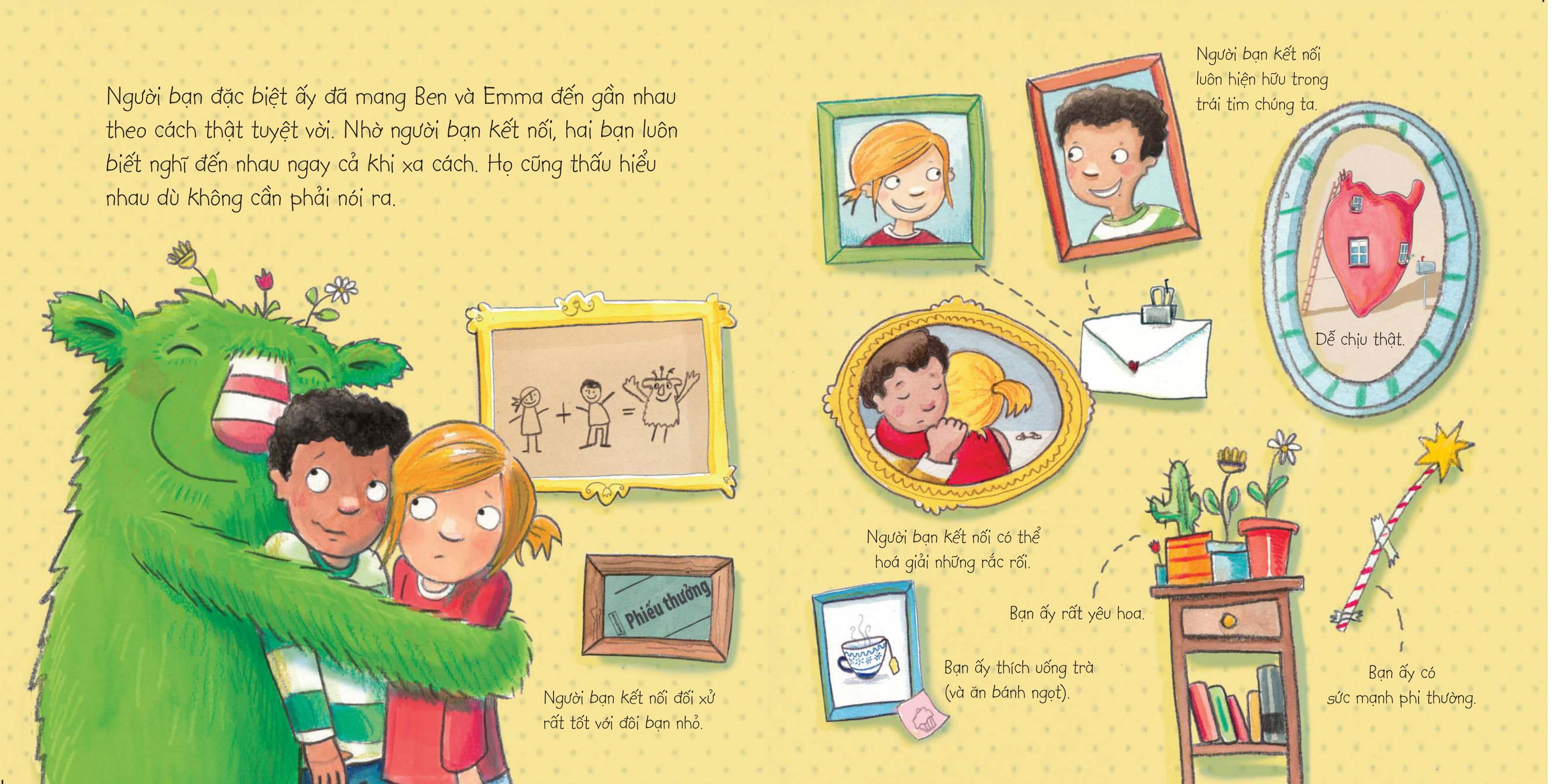Người bạn kết nối bé nhỏ khá mạnh mẽ và rất đặc biệt! Trên thế giới có rất nhiều người bạn kết nối, và cuốn sách này kể về người bạn kết nối của hai bạn nhỏ là Ben và Emma. Cũng như những đôi bạn thân, Ben và Emma cũng có những lúc giận hờn, cách xa. Trong một lần cãi cọ nó, Ben và Emma đã khiến người bạn kết nối bé nhỏ biến mất. Hai bạn nhỏ sẽ tìm lại người bạn quan trọng ấy bằnh cách nào?