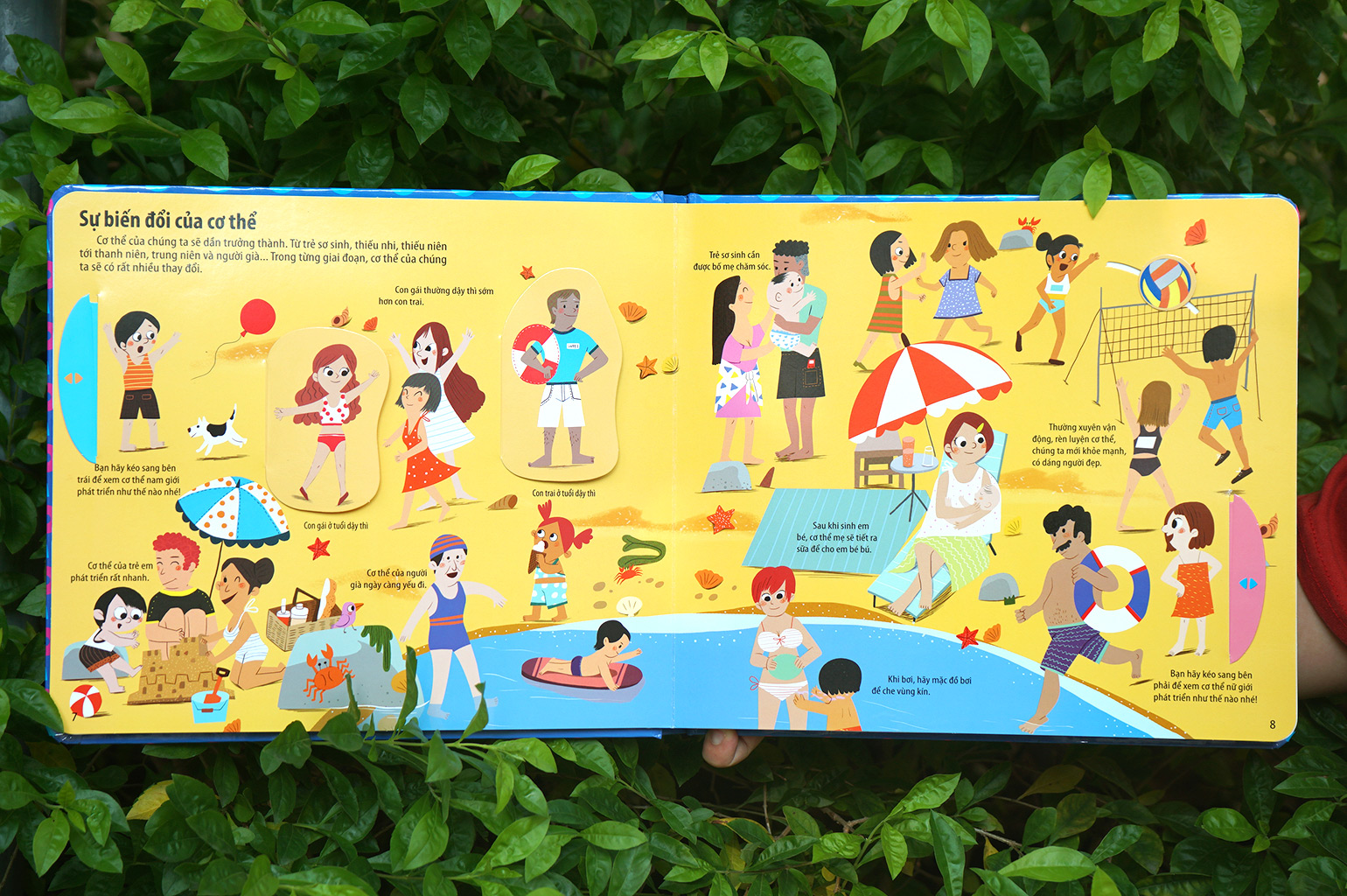 Cuốn sách còn có nhiều hình minh họa ngộ nghĩnh, thiết thực, được thiết kế đầy tinh tế, tỉ mỉ bằng các miếng LẬT - MỞ - KÉO - ĐẨY, giúp các bé vừa chơi vừa học kiến thức.