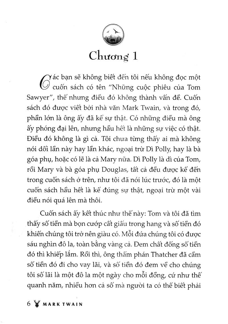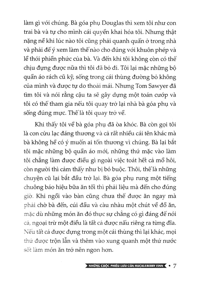 Ernest Hemingway từng nói: “Toàn bộ văn học Mỹ hiện đại đều thoát thai từ một cuốn sách của Mark Twain, đó là Những cuộc phiêu lưu của Huckleberry Finn”. Mark Twain bắt đầu kiệt tác của m.ình viết về “người bạn đồng hành của Tom Sawyer” vào những năm 1870, nhưng do một vài rắc rối, đến năm 1883 ông mới hoàn thiện bản thảo. Cuốn sách tràn đầy kỷ niệm của thế giới trẻ thơ, trong không gian bí ẩn của vùng Trung Tây nước Mỹ như một kỷ niệm gợi nhớ về một thế giới đã mất.