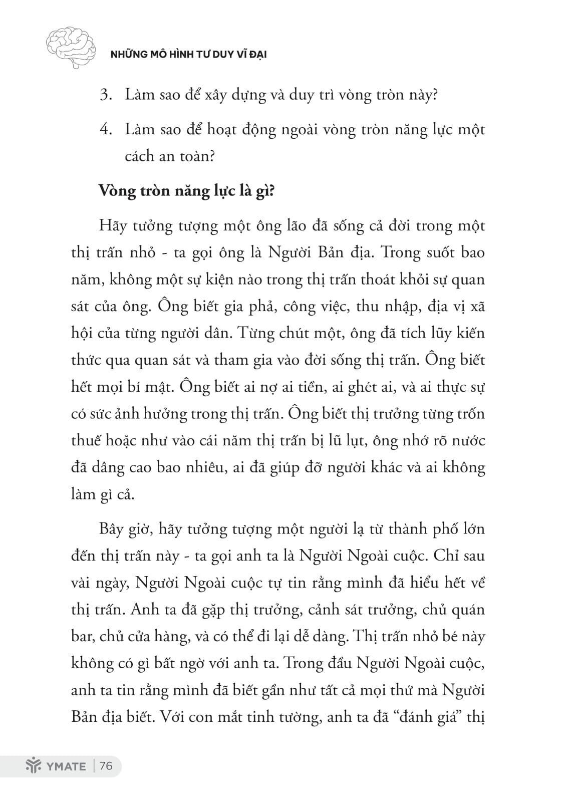 Những Mô Hình Tư Duy Vĩ Đại - Những Nguyên Tắc Tư Duy Cốt Lõi Những Mô Hình Tư Duy Vĩ Đại: Những Nguyên Tắc Tư Duy Cốt Lõi là tập 1 trong bộ sách Những mô hình tư duy vĩ đại – The Great Mental Models nổi bật của Shane Parrish và Rhiannon Beaubien được YMATE dịch, mang đến một bộ công cụ tư duy mạnh mẽ giúp bạn hiểu rõ cách thế giới vận hành. Cuốn sách giới thiệu chín mô hình tư duy nền tảng, từ Lưỡi Dao Occam đến Tư Duy Xác Suất, được trình bày dễ hiểu và minh họa bằng những câu chuyện thực tế như quyết định lịch sử của Vasili Arkhipov trong khủng hoảng tên lửa Cuba hay chiến lược vực dậy IBM của Louis Gerstner. Đây là cẩm nang lý tưởng để nâng cao khả năng ra quyết định, giảm điểm mù nhận thức và đạt được thành công bền vững trong công việc lẫn cuộc sống. ĐIỂM KHÁC BIỆT CỦA CUỐN SÁCH Tư duy đa ngành: Kết hợp các nguyên lý từ vật lý, tâm lý học, sinh học, và kinh doanh, giúp bạn tiếp cận vấn đề từ nhiều góc độ độc đáo. Thực tiễn và dễ áp dụng: Các mô hình tư duy được đơn giản hóa, đi kèm ví dụ thực tế, giúp bạn dễ dàng áp dụng vào mọi khía cạnh của cuộc sống. Truyền cảm hứng từ thực tế: Lấy cảm hứng từ những bộ óc vĩ đại như Charlie Munger và các câu chuyện lịch sử, cuốn sách không chỉ cung cấp lý thuyết mà còn khơi dậy động lực hành động. LỢI ÍCH KHI ĐỌC SÁCH Cải thiện ra quyết định: Giảm điểm mù nhận thức, giúp bạn đưa ra các quyết định logic và hiệu quả hơn. Tránh sai lầm: Nhận diện thiên kiến và áp dụng các giải pháp đơn giản để hạn chế rủi ro trong công việc và cuộc sống. Phát triển tư duy đa ngành: Học cách kết hợp kiến thức từ nhiều lĩnh vực để giải quyết vấn đề phức tạp một cách linh hoạt. Tăng tự tin: Xây dựng sự tự tin trong việc phân tích và định hướng nhờ các công cụ tư duy đã được kiểm chứng qua thời gian. AI NÊN ĐỌC CUỐN SÁCH NÀY Cuốn sách phù hợp với: – Những người muốn nâng cao kỹ năng tư duy và ra quyết định trong công việc và cuộc sống. – Nhà lãnh đạo, doanh nhân, và quản lý mong muốn cải thiện chiến lược và hiệu quả làm việc. – Sinh viên và người trẻ khao khát phát triển bản thân, học hỏi cách tiếp cận vấn đề sáng tạo. – Bất kỳ ai yêu thích khám phá các nguyên lý tư duy và muốn hiểu sâu hơn về cách thế giới vận hành. GIỚI THIỆU TÁC GIẢ Shane Parrish, nhà sáng lập Farnam Street và người dẫn chương trình podcast The Knowledge Project, từng làm việc trong lĩnh vực an ninh mạng tại một cơ quan tình báo Canada. Với khả năng đơn giản hóa các khái niệm phức tạp, ông đã truyền cảm hứng cho hàng triệu người cải thiện tư duy và ra quyết định. Rhiannon Beaubien, với nền tảng triết học và giáo dục, là thành viên chủ chốt của Farnam Street, đóng góp góc nhìn sâu sắc và cách trình bày dễ hiểu. Sự hợp tác giữa họ mang đến một tác phẩm kết hợp kinh nghiệm thực tiễn và phân tích sắc sảo, giúp độc giả tiếp cận các công cụ tư duy hiệu quả.