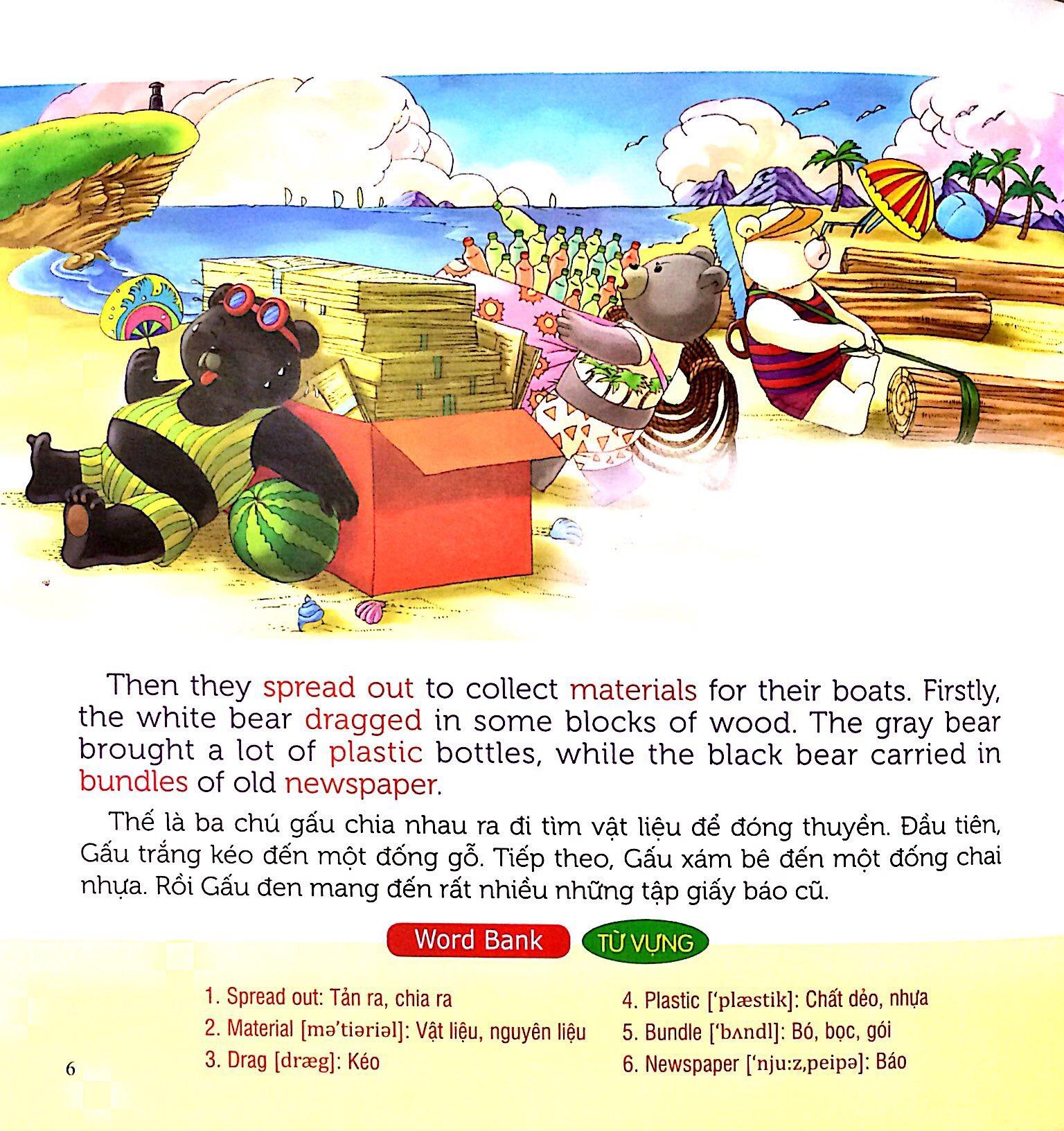 Bộ sách Truyện tranh song ngữ Anh – Việt gồm 10 cuốn với 20 câu chuyện. Các câu chuyện có độ dài vừa phải, số lượng từ vựng được đưa vào phù hợp, ngôn ngữ kể chuyện hấp dẫn và tranh vẽ sinh động đẹp mắt, giúp trẻ dễ dàng thẩm thấu và dần hoàn thiện, làm giàu vốn tiếng Việt cũng như tiếng Anh một cách tự nhiên và hiệu quả.