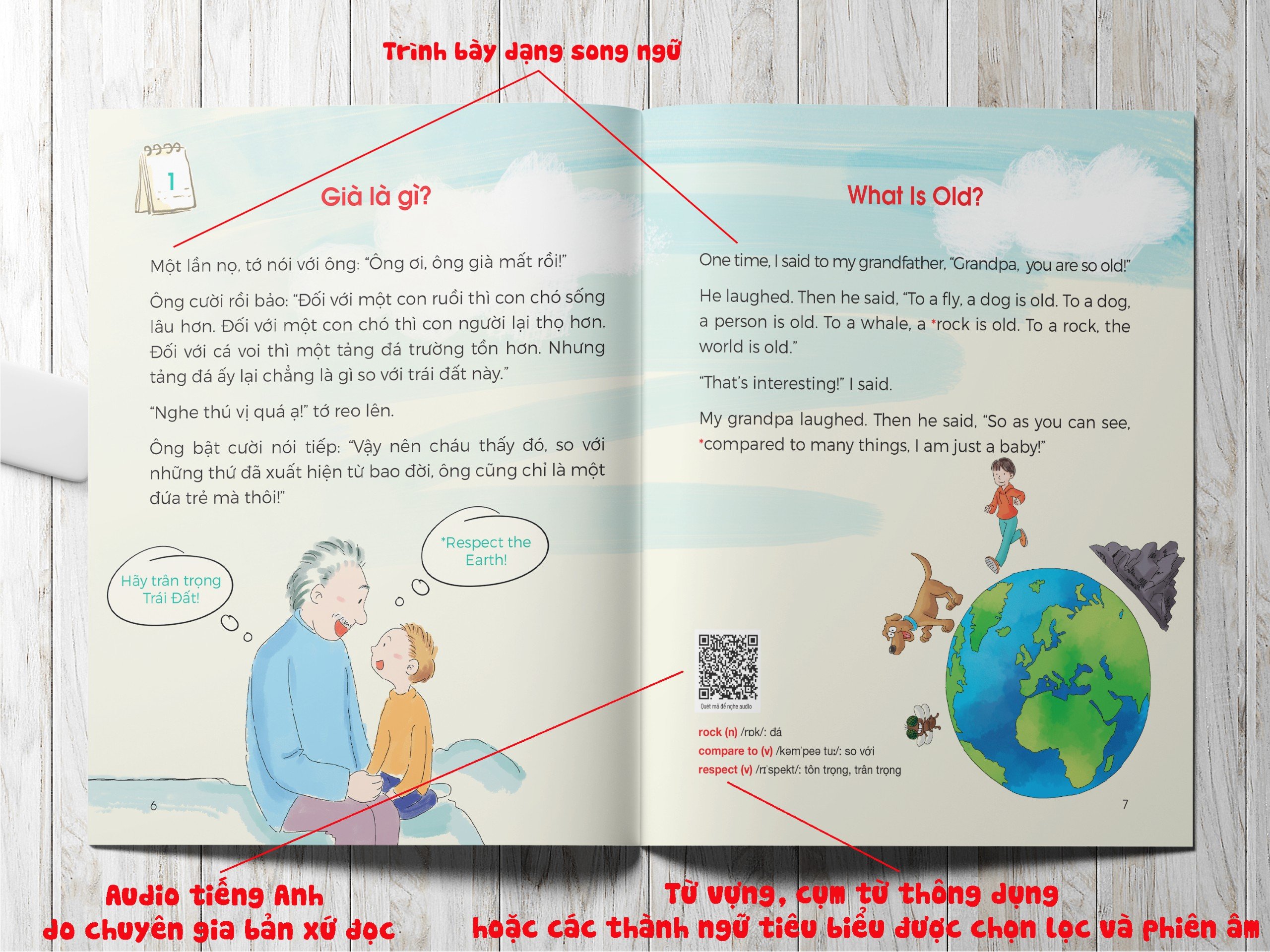 Phần file nghe (audio) đặc biệt được chú trọng, từng câu chuyện đều được lồng tiếng bởi dàn diễn viên lồng tiếng chuyên nghiệp nổi tiếng của Canada, với giọng kể chân thực, rõ ràng, đầy lôi cuốn.