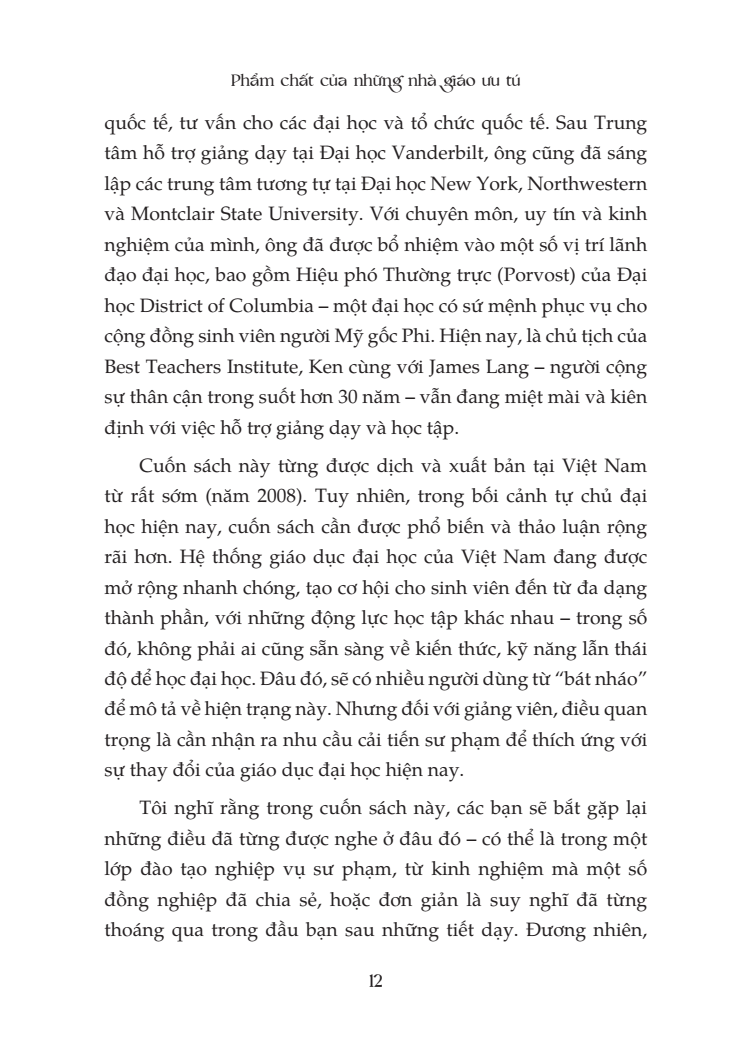 Phẩm chất của những nhà giáo ưu tú là cuốn sách bán chạy hàng đầu về giáo dục đại học, từng đoạt giải Virginia và Warren Stone năm 2004 cho tác phẩm xuất sắc về giáo dục và xã hội. Sách đã được dịch sang mười hai thứ tiếng và là chủ đề cho một bộ phim tài liệu vào năm 2007.