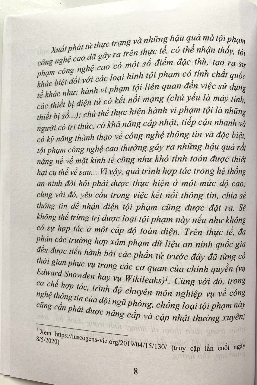 Xuất phát từ thực trạng và những hậu quả mà tội phạm công nghệ cao đã gây ra trên thực tế, có thể nhận thấy, tội phạm công nghệ cao có một số điểm đặc thù, tạo ra sự khác biệt đối với các loại hình tội phạm có tính chất quốc tế khác như: hành vi phạm tội liên quan đến việc sử dụng các thiết bị điện tử có kết nói mạng (chủ yếu là máy tính, thiết bị số); chủ thể thực hiện hành vi phạm tội là những người có tri thức, có khả năng cập nhật, tiếp cận nhanh và có kỹ năng thành thạo về công nghệ thông tin và đặc biệt, tội phạm công nghệ cao thường gây ra những hậu quả rất nặng nề về mặt kinh tế cũng như khó tính toán được thiệt hại cụ thể về Vì vậy, quá trình hợp tác trong hệ thống an ninh đòi hỏi phải được thực hiện ở một mức độ cao;cùng với đó, yêu cầu trong việc kết nối thông tin, chia sẻ thông tin để nhận diện tội phạm cũng được đặt ra. Sẽ không thể trừng trị được loại tội phạm này nếu như không có sự hợp tác ở một cấp độ toàn diện. Trên thực tế, đa phần các trường hợp x. â m ph. ạ . m dữ liệu an ninh quốc gia đều được tiến hành bởi các phần tử trước đây đã từng có thời gian phục vụ trong các cơ quan của chính quyền (vụ Edward Snowden hay vụ Wikileaks)'. Cùng với đó, trong cơ chế hợp tác, trình độ chuyên môn nghiệp vụ về công nghệ thông tin của đội ngũ phòng, chống loại tội phạm này cũng cần phải được nâng cấp và cập nhật thường xuyên; đảm bảo năng lực phòng và chống các loại tội phạm công nghệ cao trong tương lai.