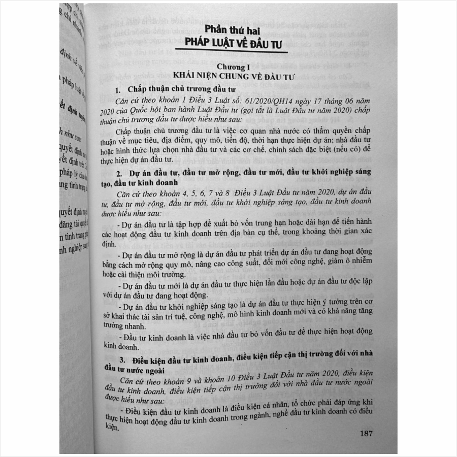 Luật Đầu tư năm 2020 được Quốc hội khóa XIV, kỳ họp thứ 9 thông qua ngày 17/6/2020, có hiệu lực thi hành từ ngày 01/01/2021. Luật quy định về hoạt động đầu tư kinh