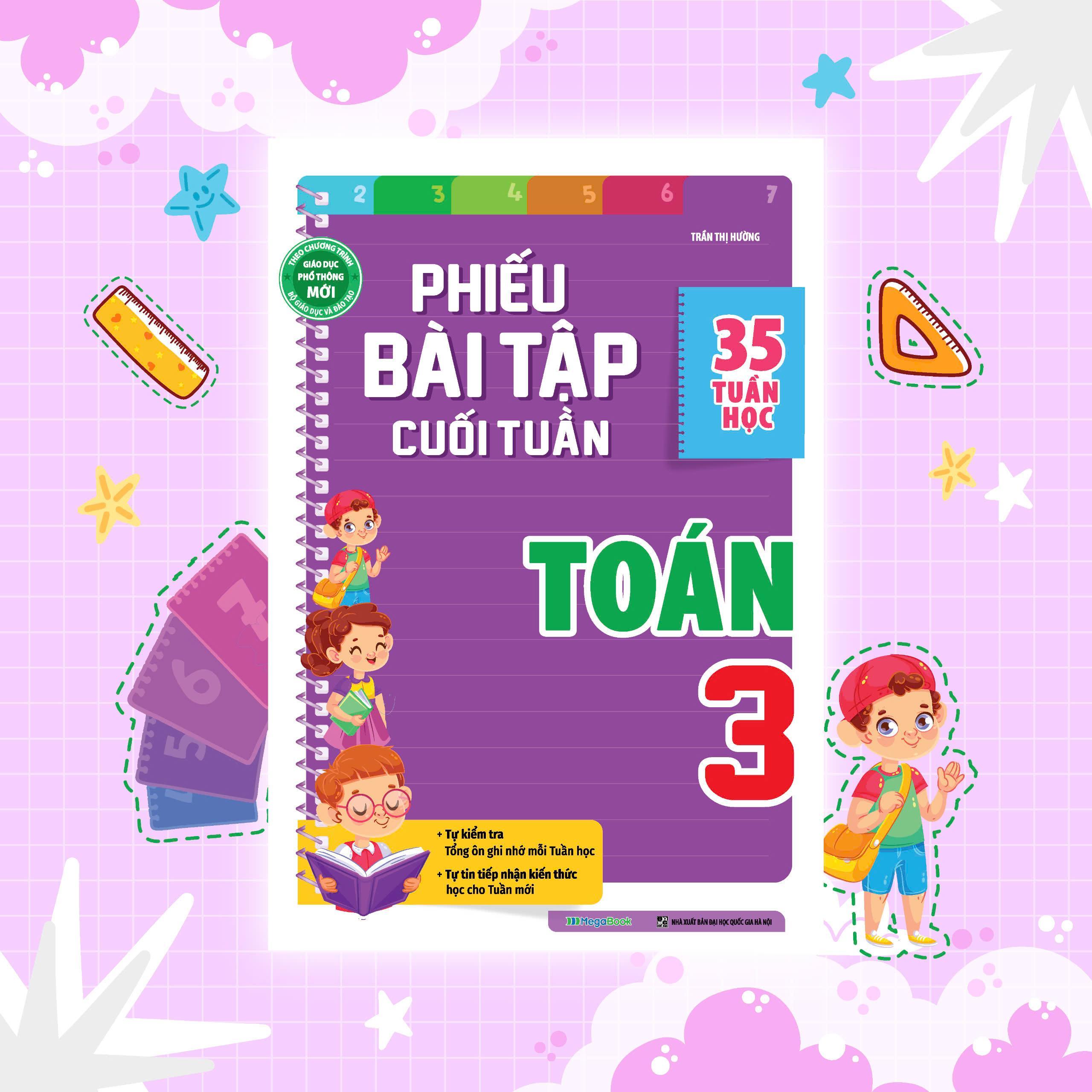 - Phiếu bài tập cuối tuần Toán lớp 3 - 88 Trang - Tác giả Trần Thị Hường - Công ty phát hành Megabook - Nhà xuất bản Đại học Quốc gia Hà Nội - Năm phát hành 2023