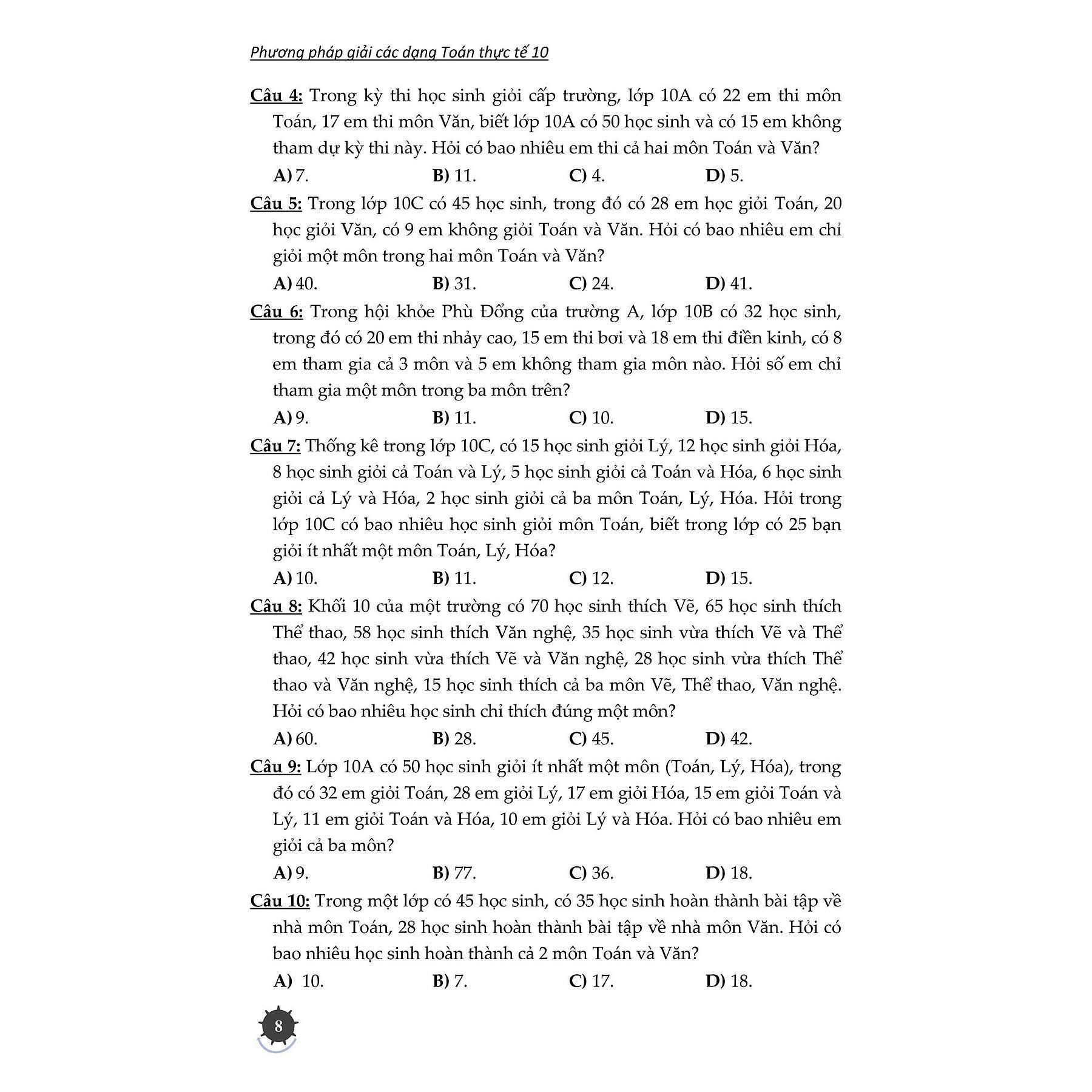 Cuốn sách được trình bày ngắn gọn, rõ ràng với một lượng bài tập phù hợp và tương đối đầy đủ các dạng toán thực tế thường gặp theo cấu trúc chương trình sách giáo khoa lớp 10 mới. Vì thế cho dù Học sinh đang học Sách giáo khoa nào cũng có thể tham khảo và nắm kiến thức phần mình muốn tìm hiểu.