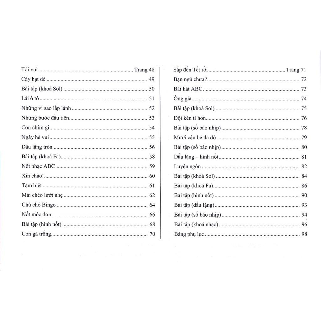 Bộ sách (2 phần) gồm những bài tập dành cho những lứa tuổi mầm non, tiểu học nói riêng và những người học mới piano nói chung. Các bài hát trong sách chủ yếu dựa