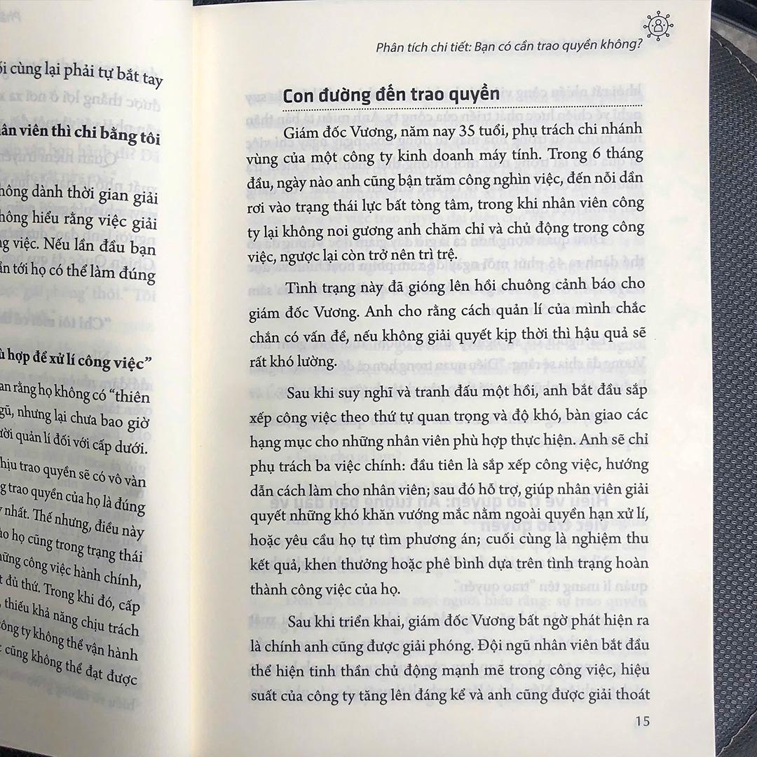 Cuốn sách này tập trung vào hai điểm chính: Thứ nhất là quy trình triển khai việc trao quyền. Phần này cung cấp nhiều kĩ năng quản lí trao quyền mang tính thực tiễn, giúp nó thực sự trở thành một giáo trình quản lí "vừa học vừa áp dụng được ngay”. Thứ hai là sự kết hợp giữa "kĩ thuật và nghệ thuật" trao quyền. Phần này tóm tắt các tình huống quản lí và những khó khăn khi quản lí, cố gắng đem lại cho các nhà quản lí những gợi mở rõ ràng hơn, bởi việc trao quyền là một nét độc đáo trong lĩnh vực quản lí, chứa đựng cả tính khoa học và nghệ thuật.