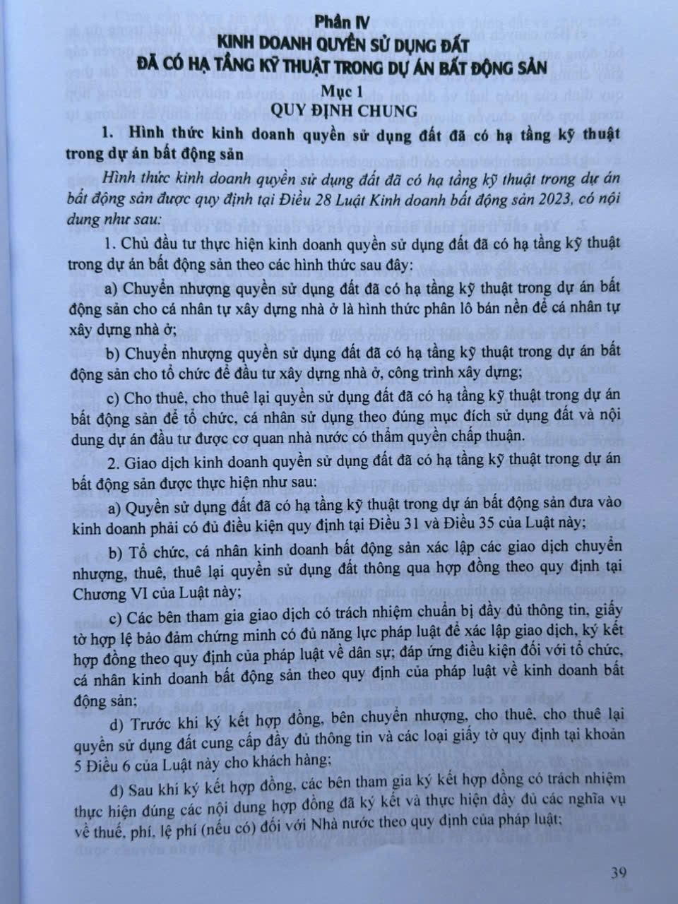 Phần IV. Kinh doanh quyền sử dụng đất đã có hạ tầng kỹ thuật trong dự án bất động sản