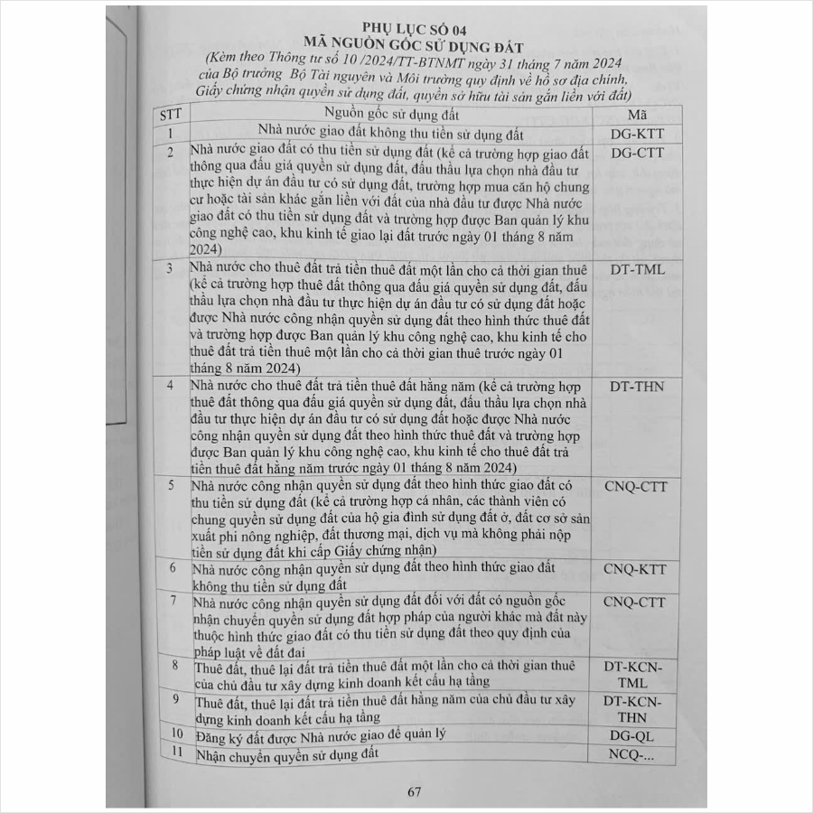 – Thông tư 10/2024/TT-BTNMT ngày 31/07/2024 Quy định về hồ sơ địa chính, giấy chứng nhận quyền sử dụng đất, quyền sở hữu tài sản gắn liền với đất,