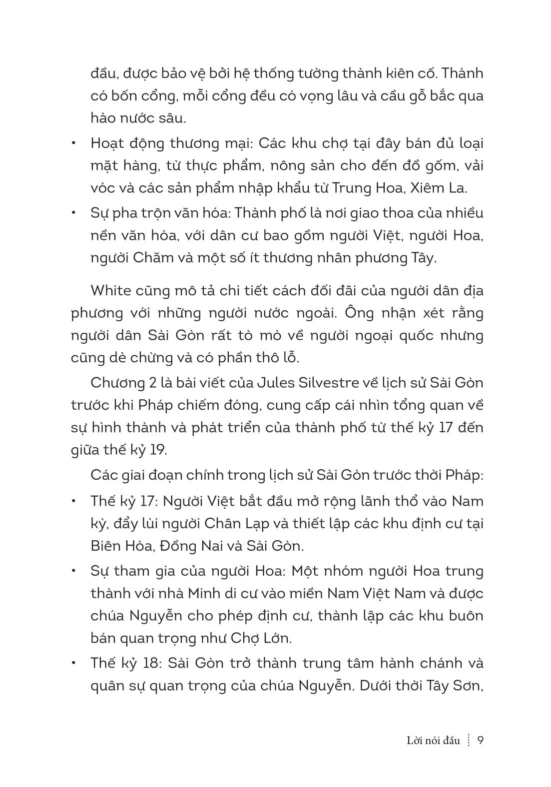 Cuốn sách không chỉ là tư liệu lịch sử mà còn là một hành trình khám phá, giúp độc giả hiểu rõ hơn về sự chuyển m.ình của Sài Gòn từ một trấn nhỏ ven sông thành trung tâm thương mại quan trọng của khu vực. Tiếng rao trên phố, nhịp thuyền xuôi ngược trên kênh rạch và những tòa nhà Tây phương, tất cả cùng vẽ nên một bức tranh đô thị sầm uất và đầy sức sống.
