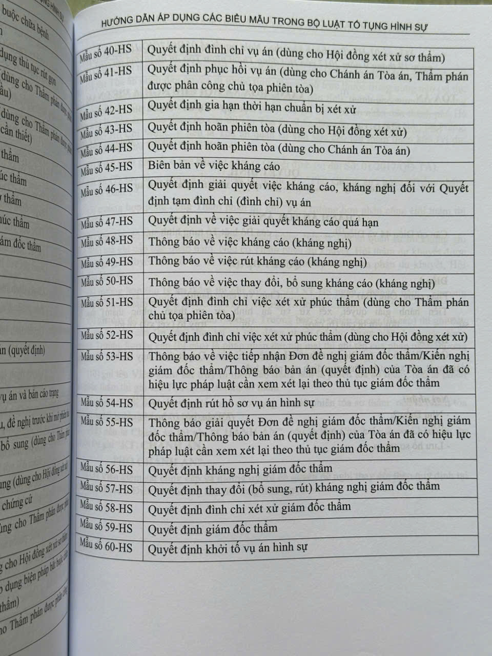 Phần II. Hướng dẫn áp dụng các biểu mẫu trong Bộ luật Tố tụng hình sự