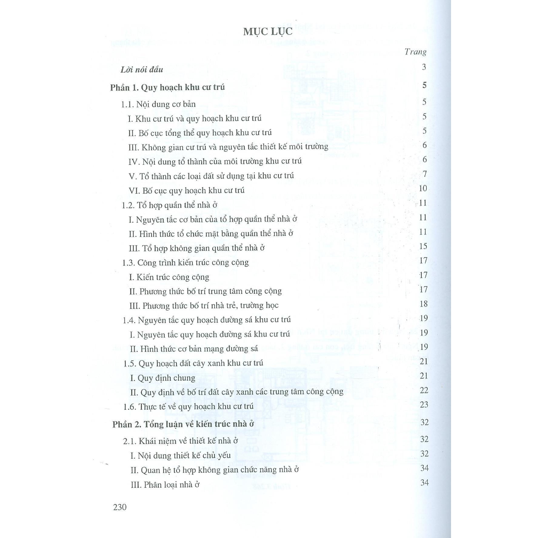 Với bất kỳ khu cư trú đô thị xuất sắc nào đều không thể thiết kế một cách biệt lập, mà phải coi chúng là bộ phận hợp thành của quần thể kiến trúc và môi trường khu vực để xem xét. Do đó phần đầu đã giới thiệu tóm lược về quy hoạch tổng thể khu cư trú, tổ hợp nhà ở cũng như bố cục kiến trúc công cộng, đường sá, đất cây xanh và những thí dụ thực tế về quy hoạch khu cư trú của Trung Quốc và nhiều nước khác trên thế giới.