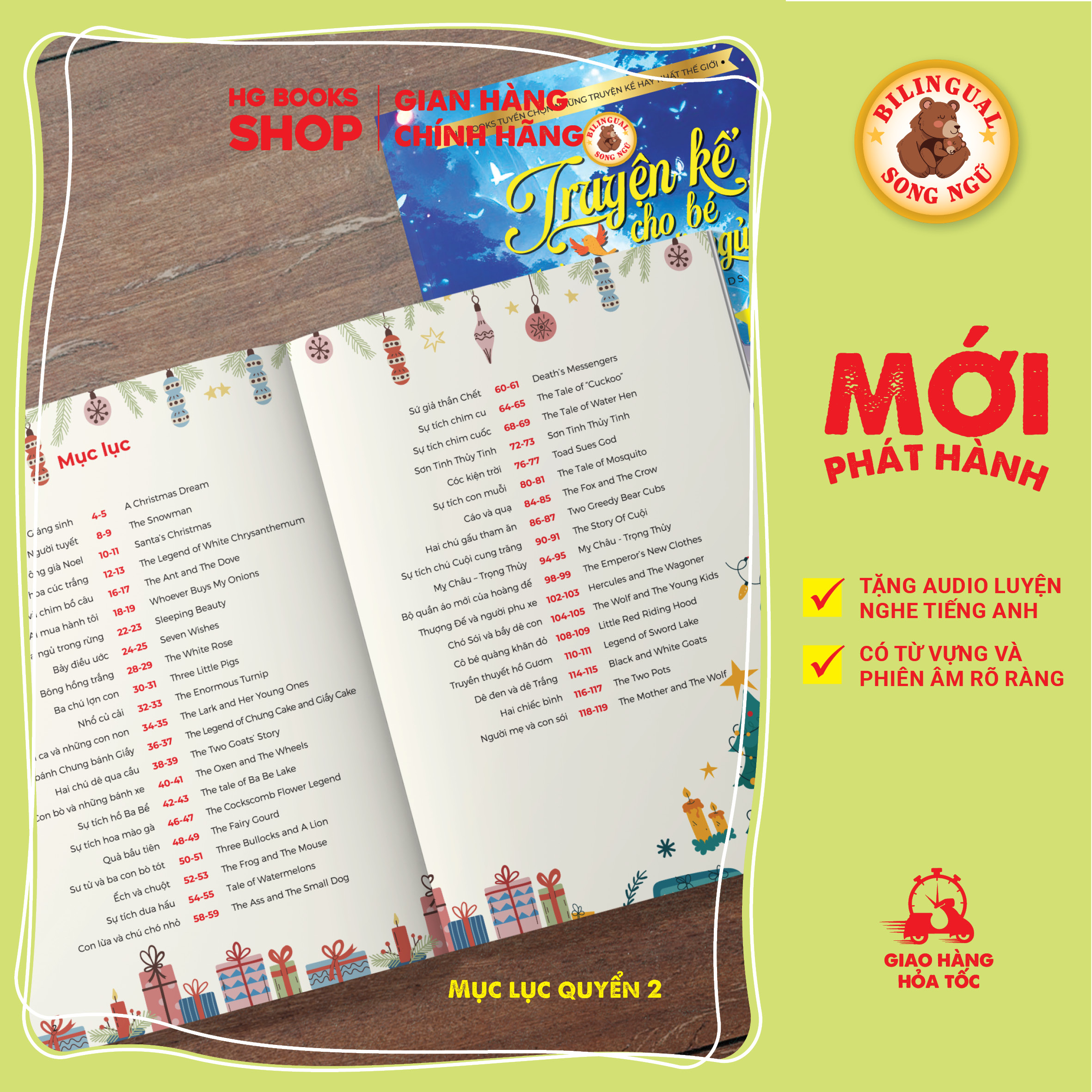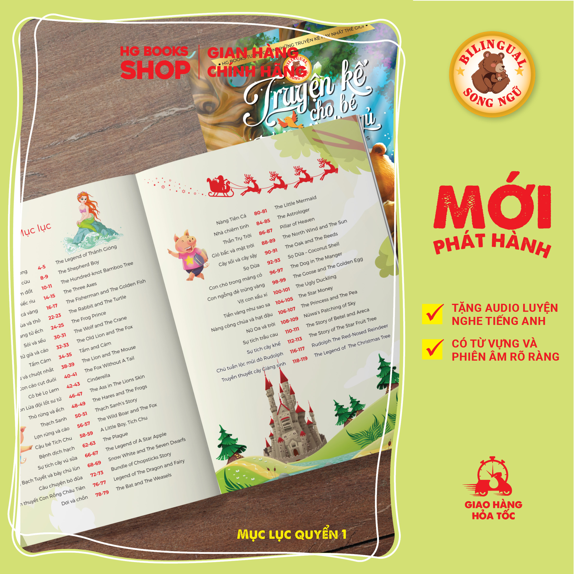 Truyện kể cho bé trước giờ đi ngủ (Bedtime Stories for Kids) là bộ sách song ngữ Việt Anh gồm 2 cuốn với 80 truyện kể hay nhất được HG Books tuyển chọn.