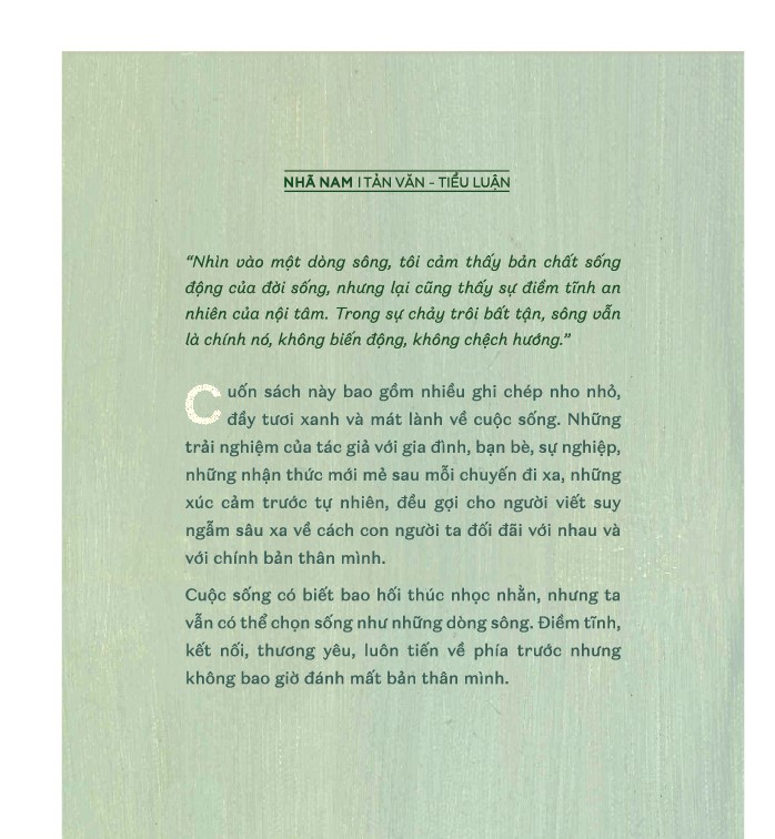 Cuộc sống có biết bao hối thúc nhọc nhằn, nhưng ta vẫn có thể chọn sống như những dòng sông. Điềm tĩnh, kết nối, thương yêu, luôn tiến về phía trước nhưng không bao giờ đánh mất bản thân mình.
