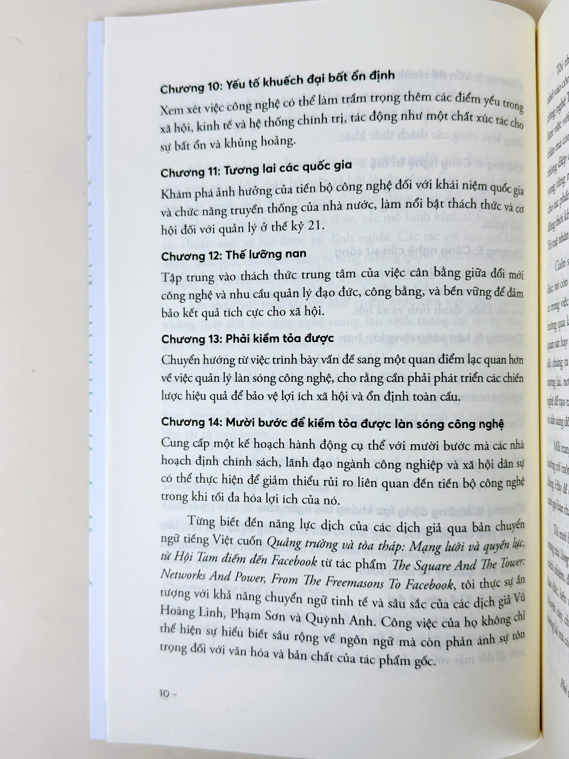 Chúng ta đang tiến tới một ngưỡng quan trọng trong lịch sử loài người. Chẳng bao lâu nữa bạn sẽ sống được bao quanh bởi AI, máy in DNA và máy tính lượng tử, mầm bệnh được thiết kế và vũ khí tự động, trợ lý robot,... Chúng sẽ tổ chức cuộc sống của bạn, điều hành doanh nghiệp của bạn và điều hành các dịch vụ cốt lõi của Chính phủ.