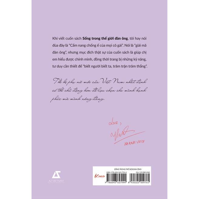 Sống trong thế giới đàn ông là cuốn sách dành cho bạn nếu bạn muốn Yêu và Sống một cách tự tin và hạnh phúc; nếu bạn muốn F5 bản thân đang “cũ kỹ” của mình; hay đơn giản, nếu bạn muốn lan tỏa cảm hứng sống sống này tới một ai đó.